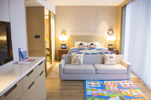 西安蓝海风万怡酒店为您提供舒适的【小黄鸭/大嘴猴】童趣亲子房,房内配置儿童帐篷+儿童木马&配套的卡通特色床上用品及洗漱用品。在这里孩子可以拥有一片属于自己的”天地”同时增进父母与孩子之间的互动。减轻孩子在陌生的环境中的不安感,并提高孩子对旅行的乐趣等。房间舒适,交通便利,周边景点丰富,再配上贴心的服务,让亲子旅行舒心且安心。