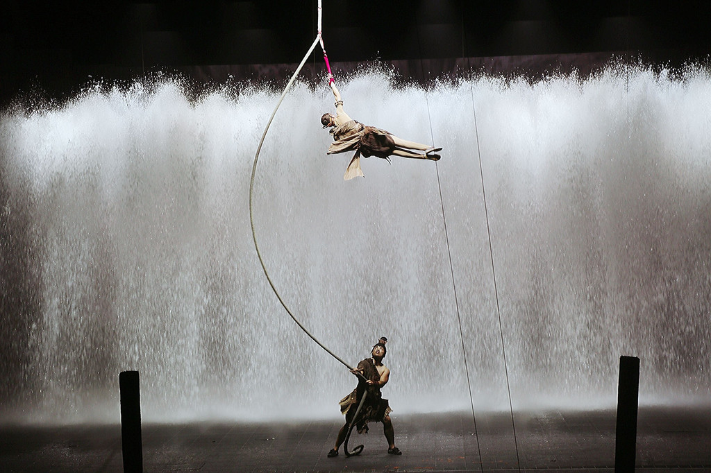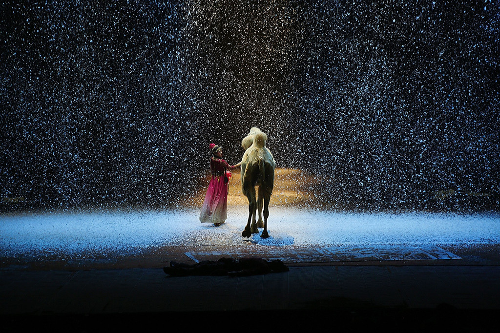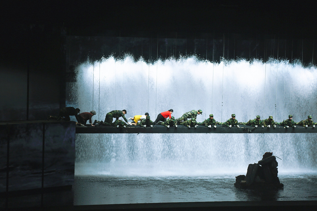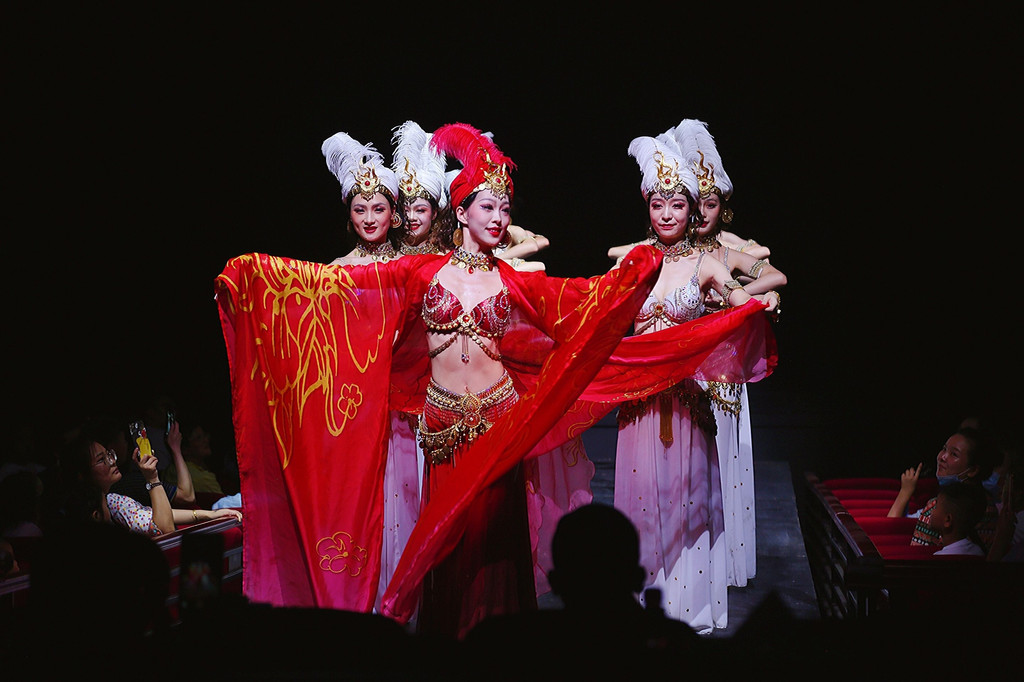 每一个篇章,都是一个故事。也带领着观众穿越到那个年代下的长安城。让我印象特别深刻的几个场景,洪水从舞台奔涌而下,人们与自然奋力抗争,中华民族通过勤劳的双手改变着困境,创造幸福的生活。还有丝绸之路上发生的感人故事,这条路上不知道倒下了多少个人,昔日的古丝绸之路就是中华民族通过骆驼一点点的将中国与西方沟通起来。而现在我们的“一带一路”,再一次将中国与世界联通。演出最后,当剧场内飘扬五星红旗,《歌唱祖国》的歌声响起,我想每一个中华儿女,都会因为生活在这样的国家感到自豪和骄傲。