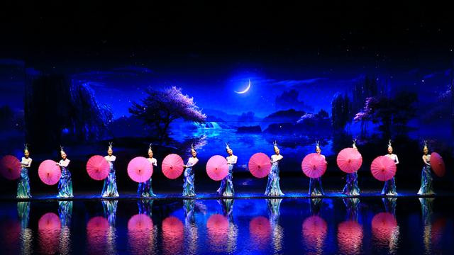 歌舞《西安千古情》以一位华裔少女回国寻根的故事为主线,开启一次寻找民族记忆之旅,分为《文明之光》《灞河之洲》《大禹治水》《大唐盛世》《丝绸之路》等场。