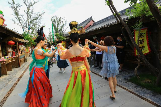 景区内每天在不同时间段,都有一些互动式演出,比如抛绣球选亲,广场锅庄舞,快闪等。游客可以参与景区内演员一起跳舞。