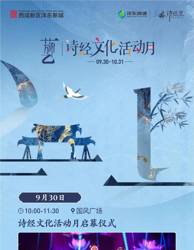 国庆前夕,正值秋高气爽的日子,9月30日上午,由中共陕西省委宣传部、中共西安市委宣传部、西安市文化和旅游局指导,西咸新区党工委宣传部、西咸新区文化和旅游局、西咸新区沣东新城管理委员会主办,西安沣东发展集团有限公司协办,西安沣东城建开发有限公司、陕西诗经里文化旅游实业发展有限公司承办的 “艺万象·诗经文化活动月”启幕仪式在西咸新区沣东新城诗经里小镇盛大揭幕。