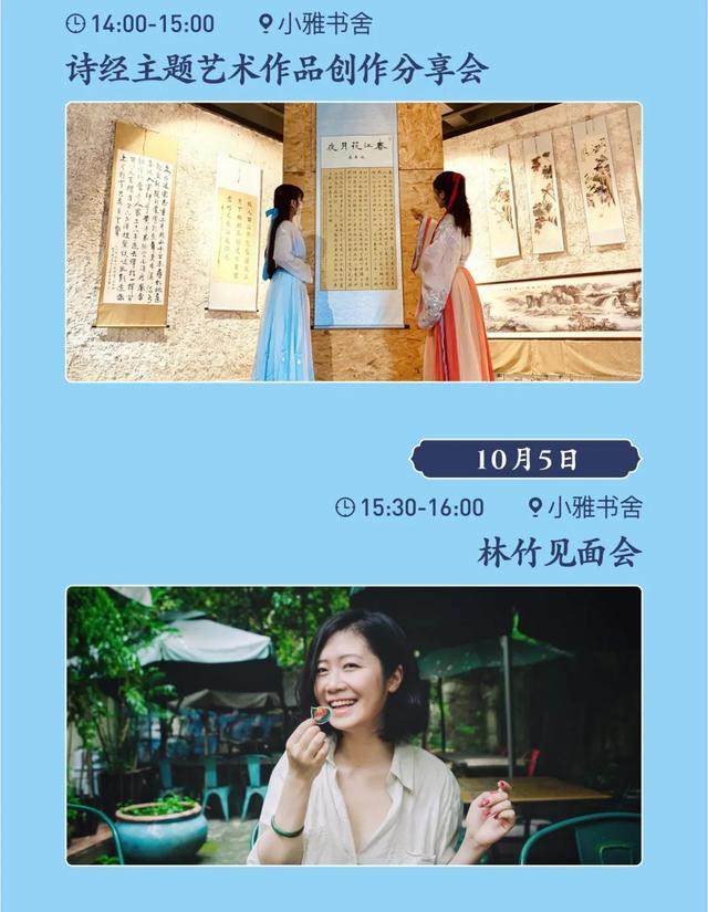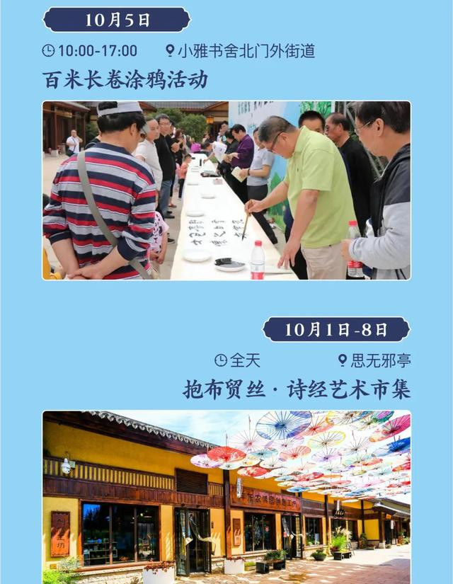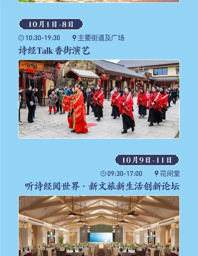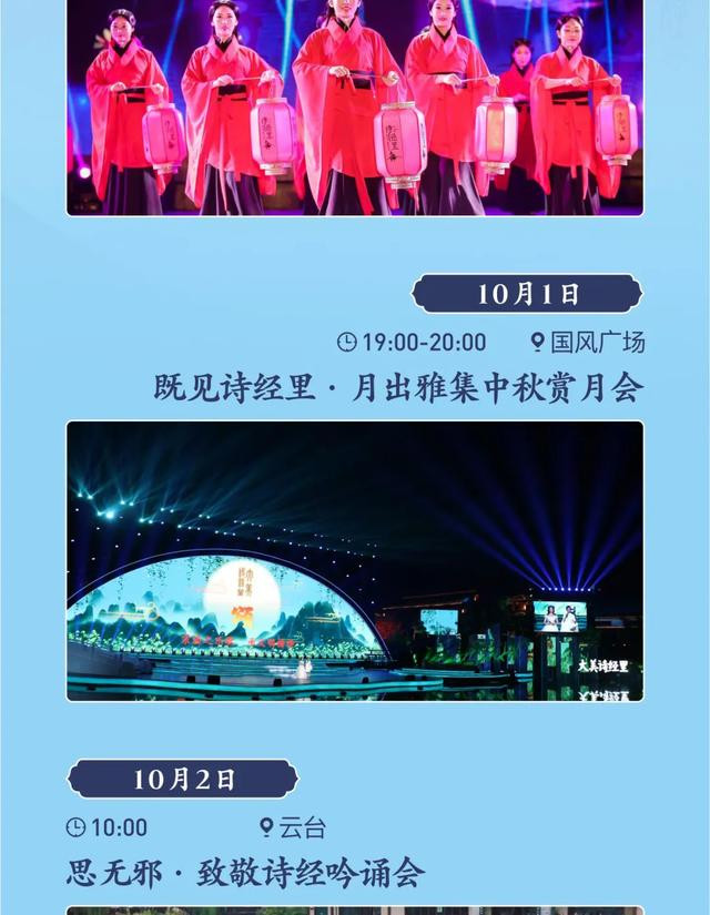 本次诗经里小镇“诗经文化活动月”在2020年9月30日到10月31日期间开展,围绕“月出雅集·中秋赏月晚会”、“思无邪 · 致敬诗经吟诵会”、“古琴比赛和百人抚琴”、“创新文旅论坛”、“插画书法艺术”五大主题特色,将古琴、吟诵等非物质文化遗产深入大众,将古乐、书法、插画等艺术形式融入其中,让文化学者、文旅专家、先锋艺术家等共聚诗经里,将让广大游客体验到“听一曲礼乐,颂一段诗经,枕一席诗梦,做一日诗人”的优雅生活。通过此次系列活动,诗经里小镇充分利用自身文化资源,完成对过去的总结、梳理,让西安重回诗意。