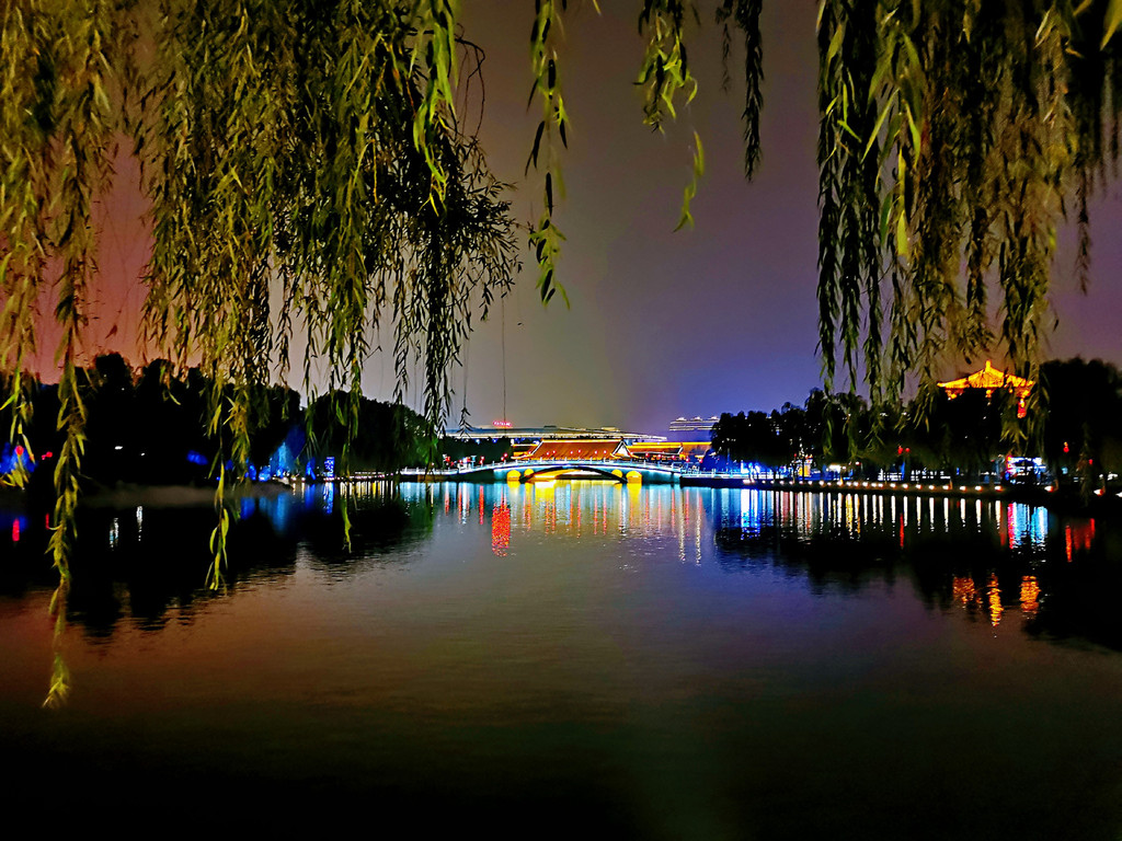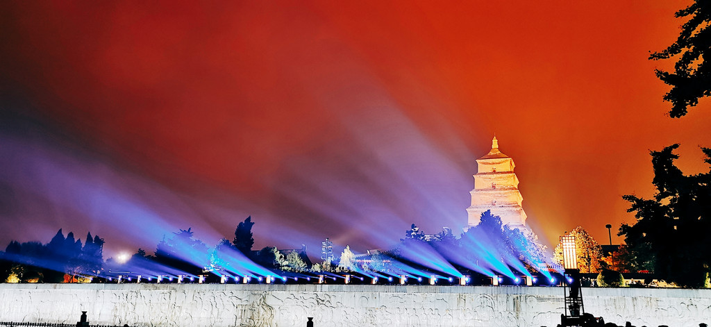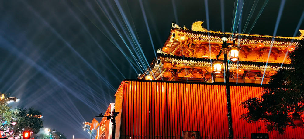 长安像是一个浓妆华服雍容华贵的女子,梳妆完毕挂起华灯,打开怀抱,拥抱着每个醉在长安里的人,夜风掠过,有孩子在玄装广场奔跑的笑声,有情人相拥而行的软语,有好友拍照打闹嬉笑,