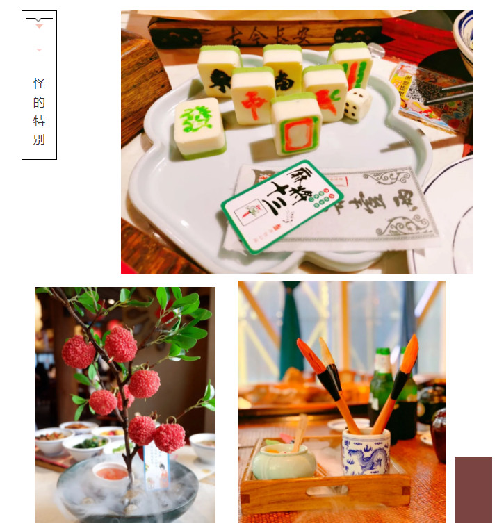 一盘造型奇特冒着白烟的菜,被一个身着汉服的服务员端上来,大喊一句:客官您慢用!