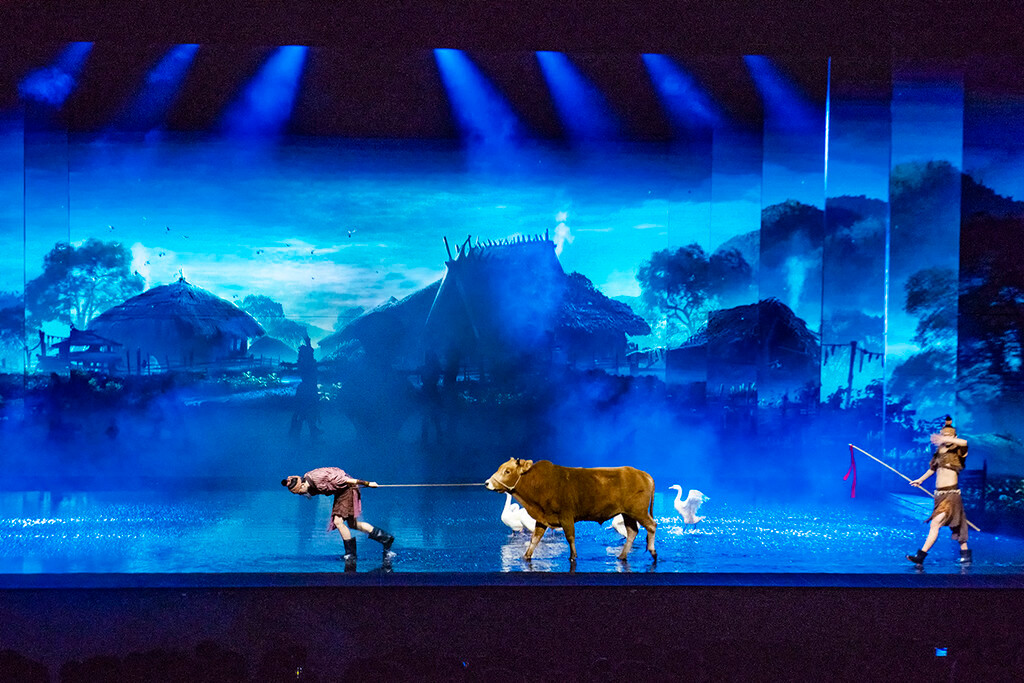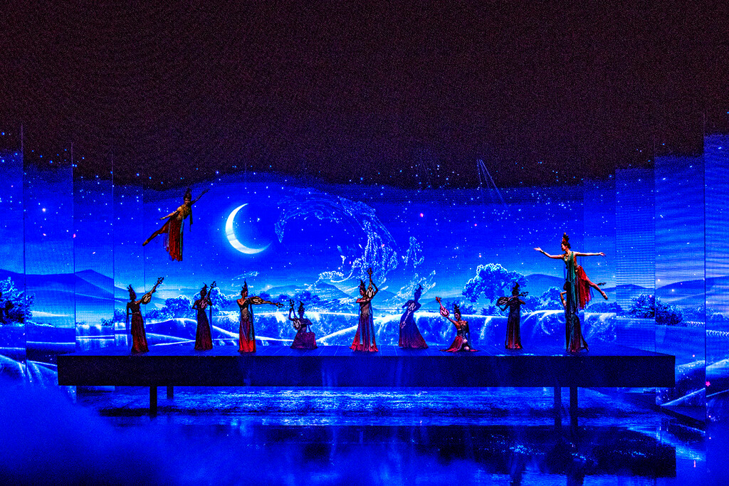 整场演出时长60分钟,分为《文明之光》《灞河之洲》《大禹治水》《大唐盛世》《丝绸之路》等几大篇章,每个篇章有着不同的故事,而所有的篇章又拥有同一个主题,用独特的视角将古城西安的历史典故、神话传说、以及其文化背景以歌舞、杂技等艺术形式呈现在我们面前。