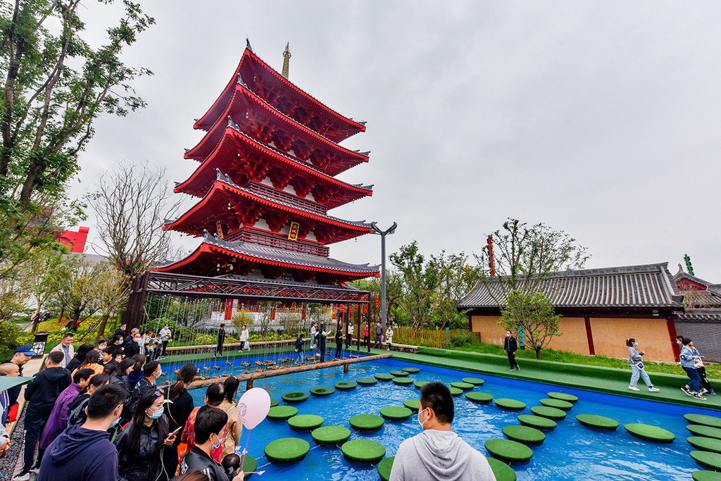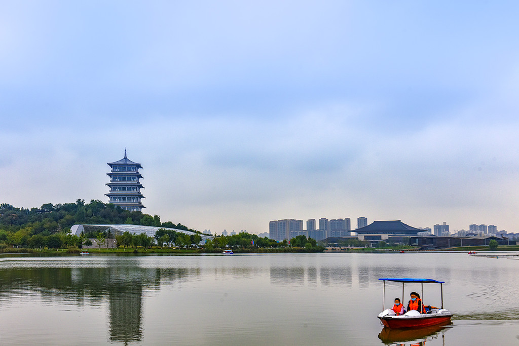 景区里更是一步一景,步移景换,每一眼都有新鲜感,林荫道,锦锈湖,宋城塔,长安塔交相辉映,有颜亦有腔调。