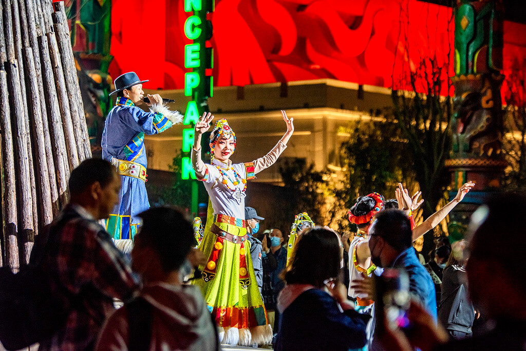 如果不是特别赶时间,建议看完演出也别急着走,再四处逛逛,看看景,游游园,享受一下美食,待夜幕降临,灯光亮起,整个西安宋城演艺王国摇身呈现出另一种璀璨。
