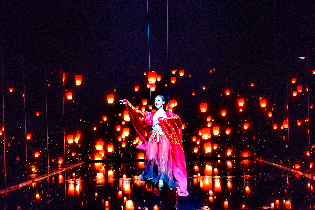 高精尖的声光电舞美技术、虚实结合的表现手法,营造如梦似幻的意境,给人以强烈的视觉震撼,打破观众区域界限的独特舞台设计,再加上数百位演职人员的倾力演绎、震撼的现场特效,让现场观众沉浸式感受长安城的历史沉浮。