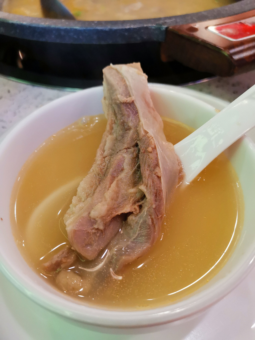 羊瑞堂铁锅羊肉:的确好吃,我们不饿,只要了一斤和一份西葫芦丝,是好吃,炖得软糯,可实在是没有二个胃。