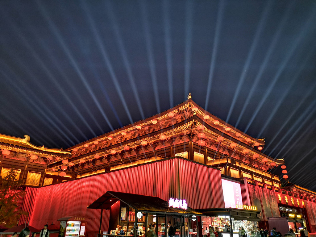 本来是打算走回小寨站逛赛格购物中心的,结果因为实在太累了,索性直接去大悦城,因为我们下午的行程是大雁塔和不夜城。我们直上大悦城最顶层,有公共的区域可以坐着远观大雁塔,我们去旁边喝漫咖啡,等天黑灯亮了,我们就下楼前往不夜城。不夜城实在是大呀、宽呀!周边的建筑物也非常的搭,我爱上这长安红,这红色的灯光大气、低调,与城墙的灯笼一样有着皇族的贵气。建议大家一定要来看看。