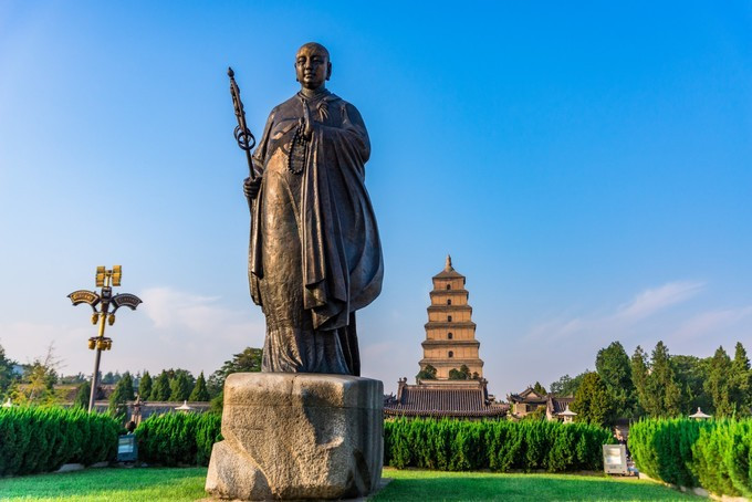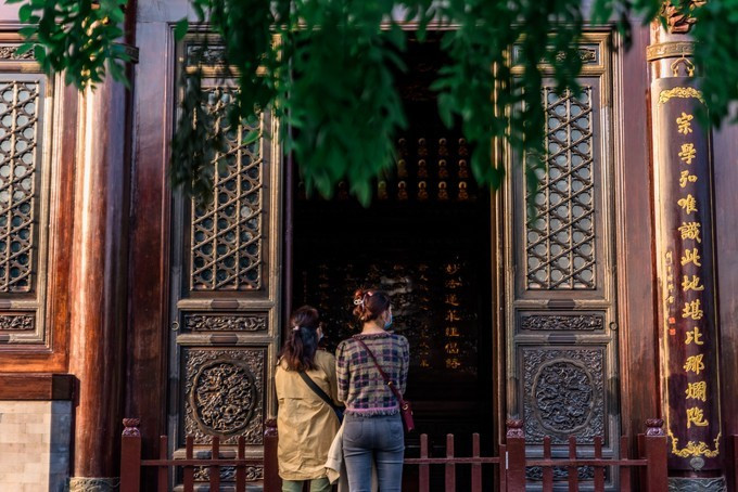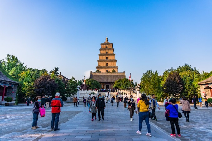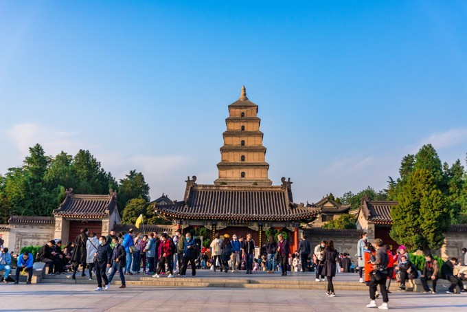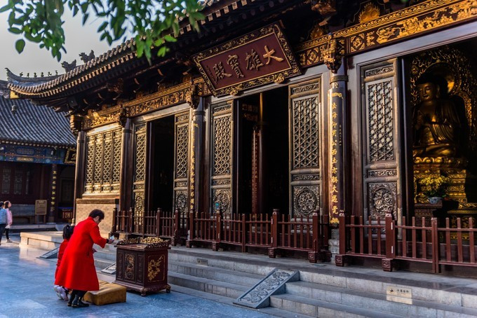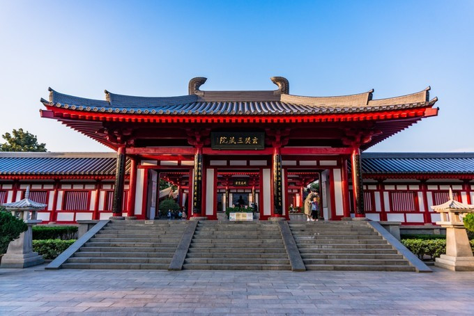 大雁塔因寺而建,千年矗立在慈恩寺内。慈恩寺也是游客的必到之地,从正门进入穿过主殿就可以到达大雁塔的底部。慈恩寺香火鼎盛,不少的游客慕名而来,虔诚请愿。