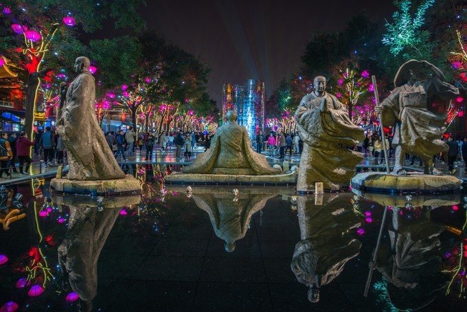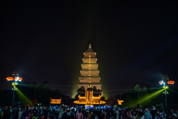 西安 的魅力不止于白日的婀娜古韵,夜晚 西安 的盛世繁华开始蔓延,从大唐到现金, 西安 是一座不夜城。慈恩寺广场前人流攒动,比白天的人还要多,还要热闹。