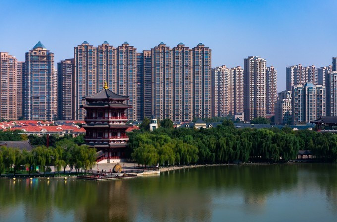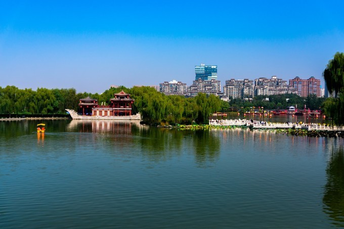 风平浪静时,可见 紫云 楼以及周边建筑的倒影。动静变幻,气象万千,令人心旷神怡。