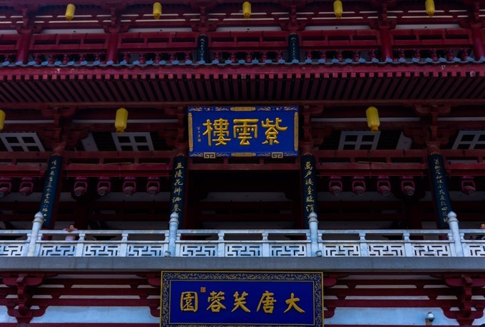 位于园区中心的 紫云 楼,是大唐芙蓉园的主体建筑,也是 中国 规模最大的仿唐皇家建筑。历史上的 紫云 楼,据载建于唐开元十四年,玉楼金殿,嵯峨高耸,俯视绿洲 曲水 荡漾,遥望终南群山起伏。当年每逢曲江大会,皇帝登临此楼,凭栏观景,欣赏梨园轻歌曼舞,赐宴贵妃宠臣,同时又能观望万民同游曲江池,有与民同乐之意。