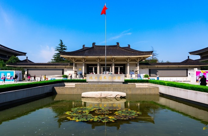 陕西 历史博物馆位于 西安 大雁塔的 西北 侧,是 中国 第一座大型现代化国家级博物馆。前这座馆舍为“中央殿堂、四隅崇楼”的唐风建筑群,主次井然有序,高低错落有致,气势雄浑庄重,融民族传统、地方特色和时代精神于一体。馆藏文物1717950件(组),从上起远古人类初始阶段使用的简单石器,下至1840年前社会生活中的各类器物,时间跨度长达一百多万年。文物不仅数量多、种类全,而且品位高、价值广,其中的商周青铜器精美绝伦,历代陶俑千姿百态,汉唐金银器独步全国,唐墓壁 画举世无双。可谓琳琅满目、精品荟萃。