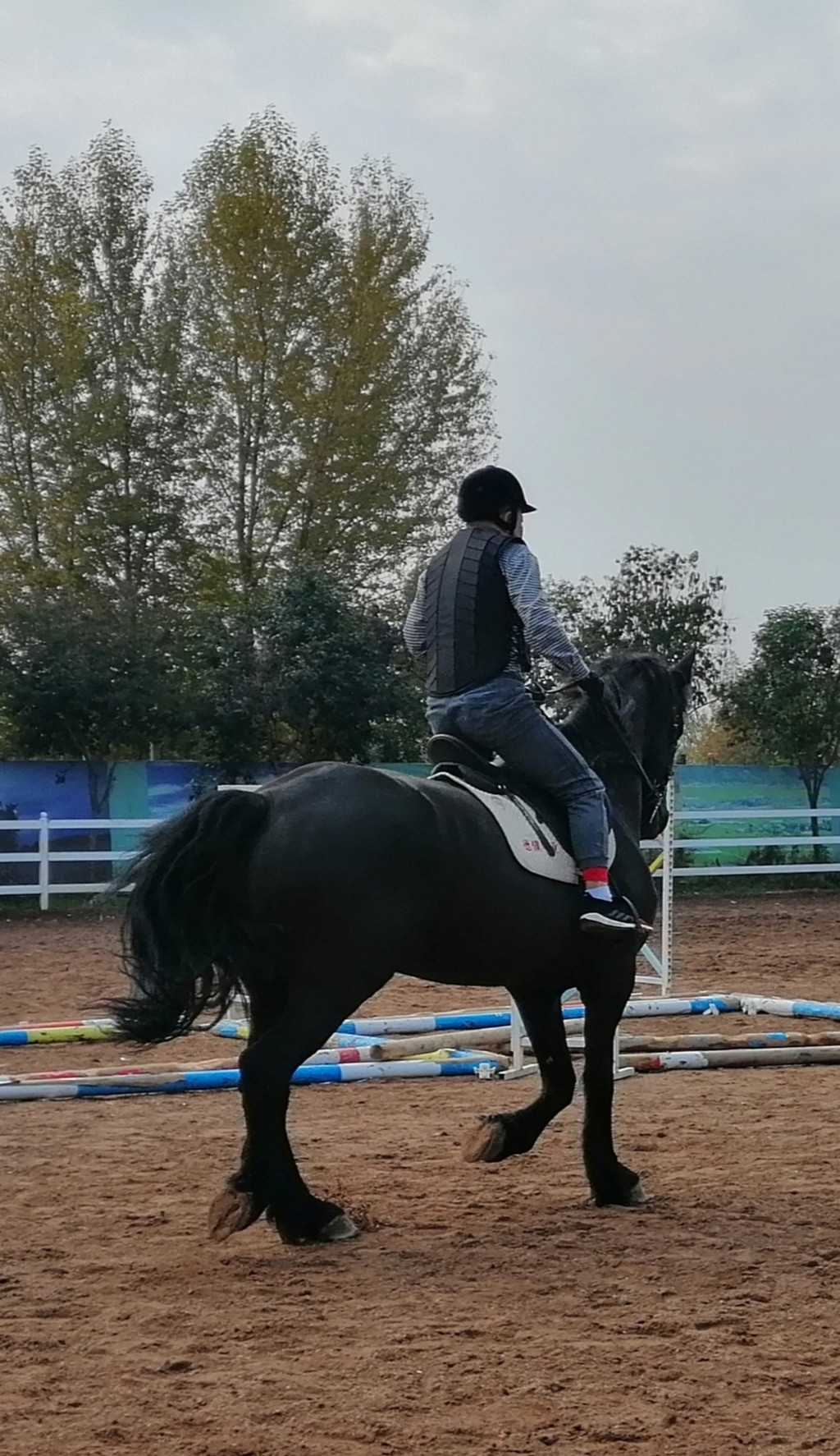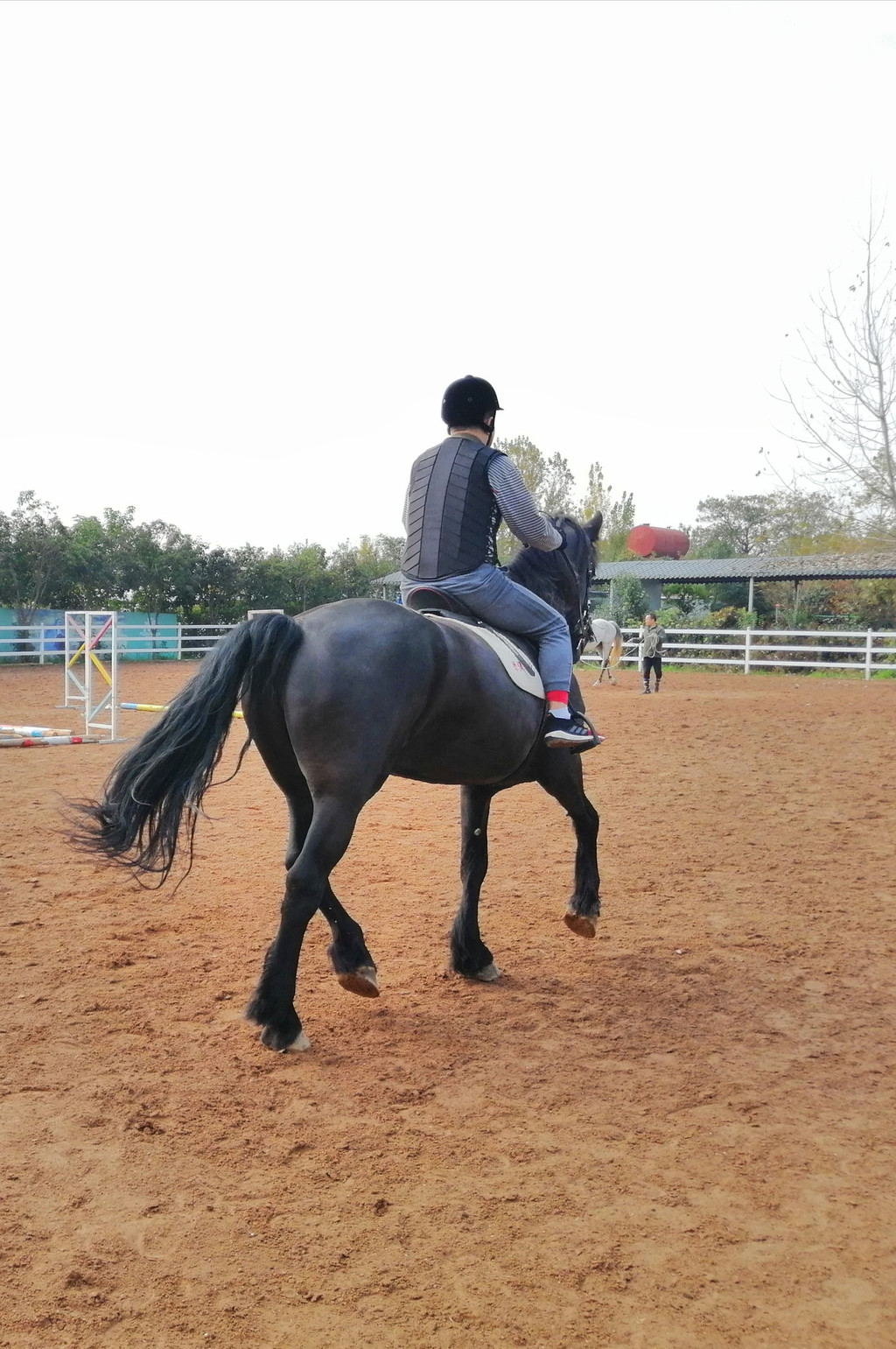 教练说小腿肚夹紧马身,脚后跟用力敲打马肚,马就会跑起来,我用脚跟敲打,马无动于衷,教练说使劲,借助腰部的力量,使劲。马终于跑了起来,可是牠似乎总在找教练,不好好向前跑,教练说用缰绳控制方向,我使劲纠正牠,牠就干脆不跑了。再用后跟击打牠的肚子,牠便又跑起来,优雅小步,像在跳舞,教练不停地在纠正我~坐直,眼看前方,缰绳放置在肚脐以下位置,脚打马肚,打完后整个小腿肚贴着马身向前滑,马跑起来的时候身体随着牠打浪……这个坏孩子,不太听指挥,跑几步又停了下来。