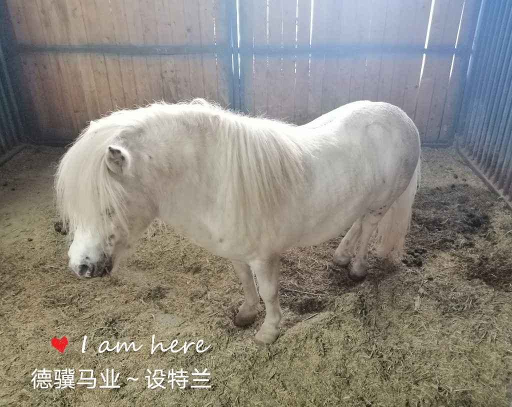 马厩里最矮的设特兰只有七十公分,完全看不出牠已经四岁多了。旁边马厩里只有一岁的小马驹都比牠高出很多,这个鼻梁上有道白纹的小马驹性格十分温顺,轻抚着牠的鼻梁尤其温和,那一双温情脉脉的大眼睛,萌到我了。