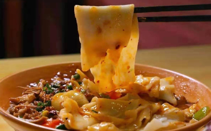 随便一家小店,味道才是惊喜,红红的颜色,亮油油的宽面,视觉的冲击和味道同事爆发,直接把饥饿的本人搞得食欲打开。陕西的面以前只是听说,这才是百闻不如一见。