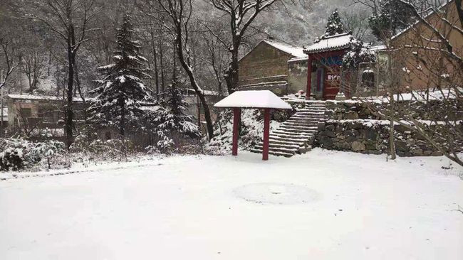 而入冬以来这里已经下过5场雪了,下雪的时候从峪口到山顶到处都是积雪,而峪口外面则没有,非常的神奇,雪后即便是峪口的雪化了,从太兴山脚下到山顶的积雪则很难融化,由于今年气温太低,雪后甚至达到零下十几二十度,据这里的隐士修行人说,这么冷的天气积雪要融化则要等到开春了。