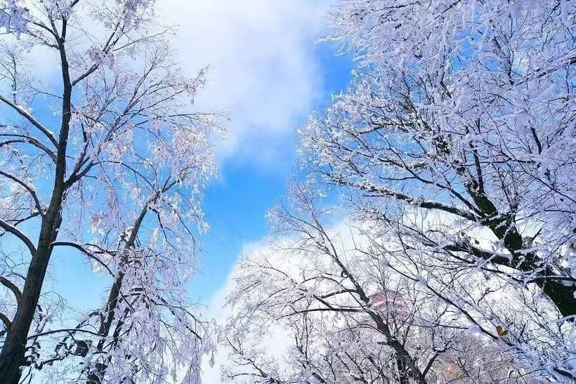“终南阴岭秀,积雪浮云端。”当皑皑白雪覆盖南五台曲折的山道,路边的树木,缀满银花,古朴的建筑闪耀着琼楼玉宇般的耀眼银辉,松枝、柳树上挂满了,毛茸茸亮晶晶的银条儿。不禁让人吟起白居易的“已讶衾枕冷,复见窗户明。夜深知雪重,时闻折竹声。”又一个穿越时空的共鸣。