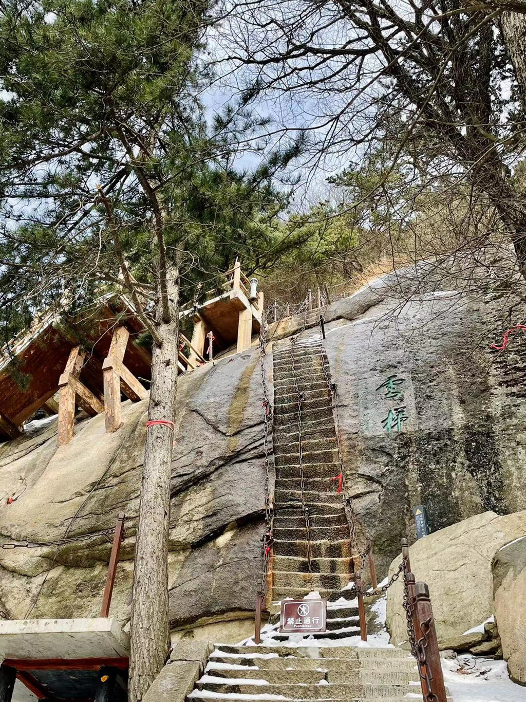这是东峰去往中峰途中一处景点,云梯,也就只能看看了,并且佩服华山派的弟子们体力惊人,毅力惊人,这种路也能走,果然有成为大侠的潜力。