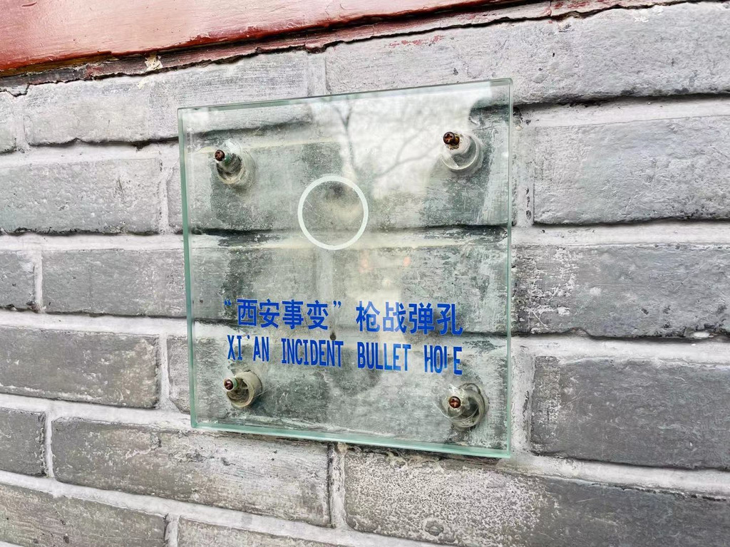 这弹孔特别有意思,原本没有玻璃罩保护的时候,游客每人摸一下,弹孔就变大了......所以还是保护一下吧。