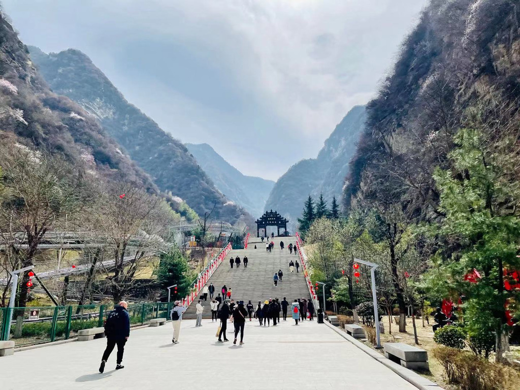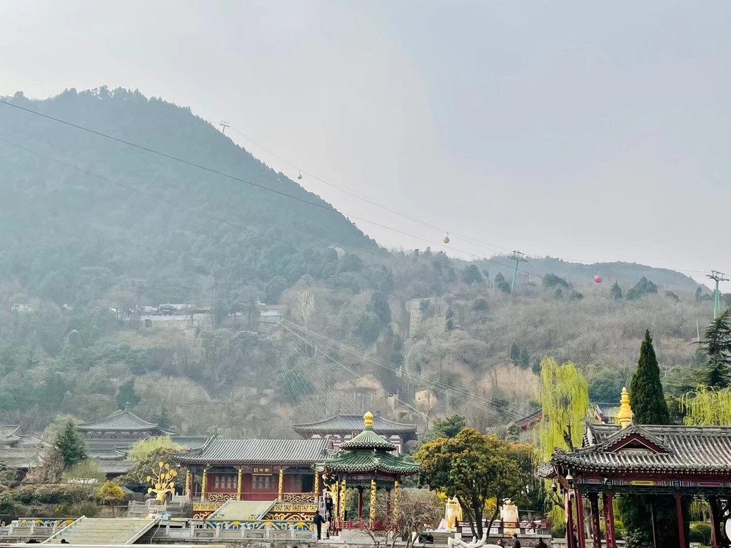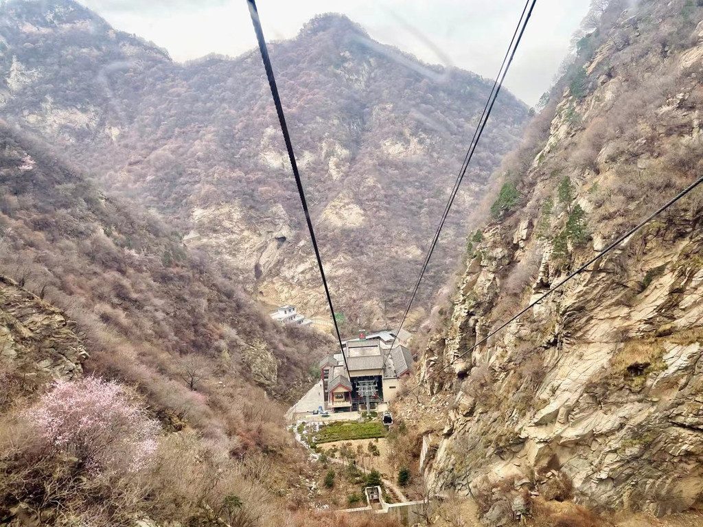 依然乘坐西峰索道下山,回头可以看到这凿在悬崖峭壁上的索道确实不容易,人间奇迹。