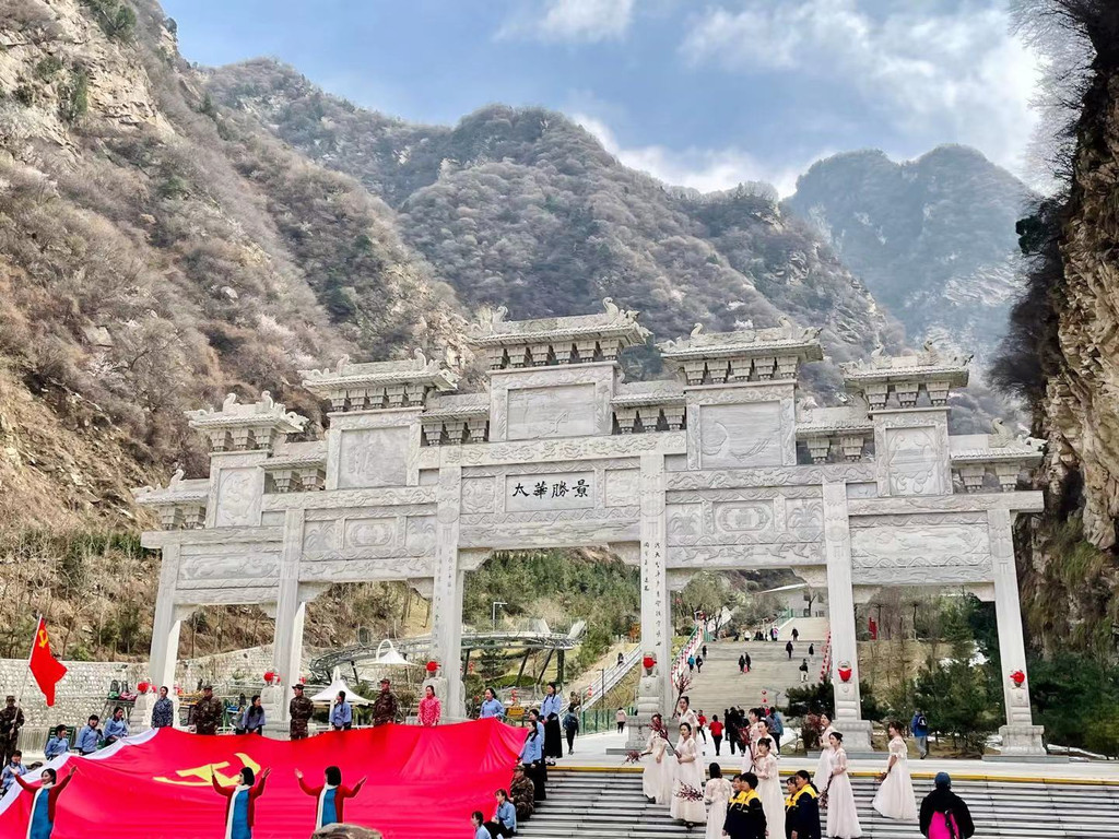 进去景区大门,山下牌楼处正有些组织在搞活动,排练得不错。
