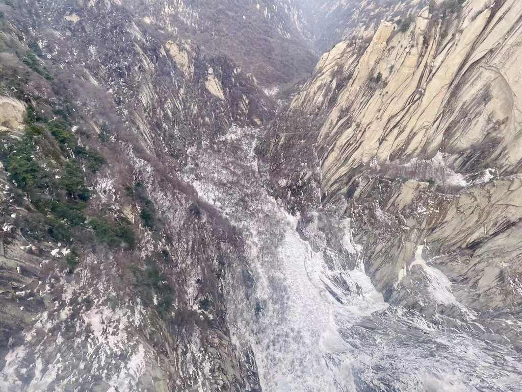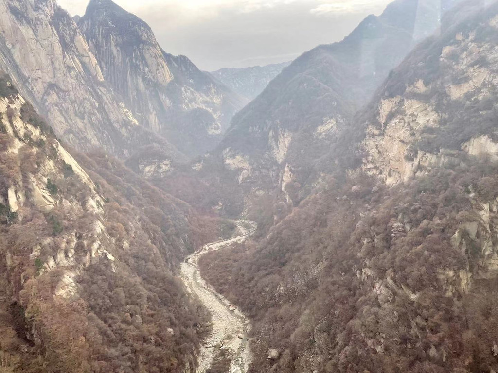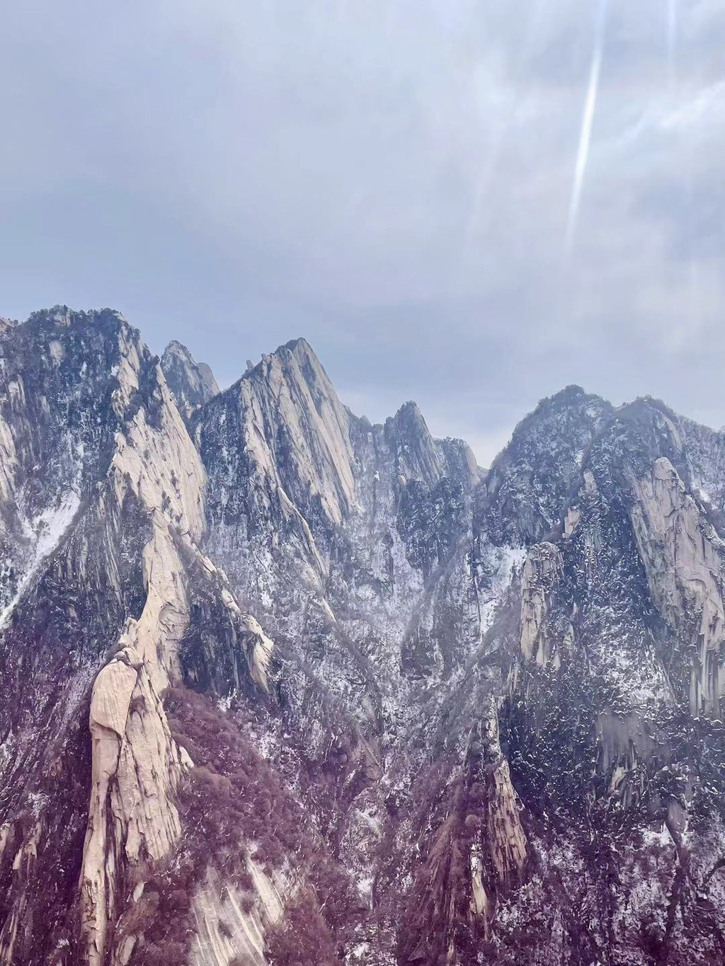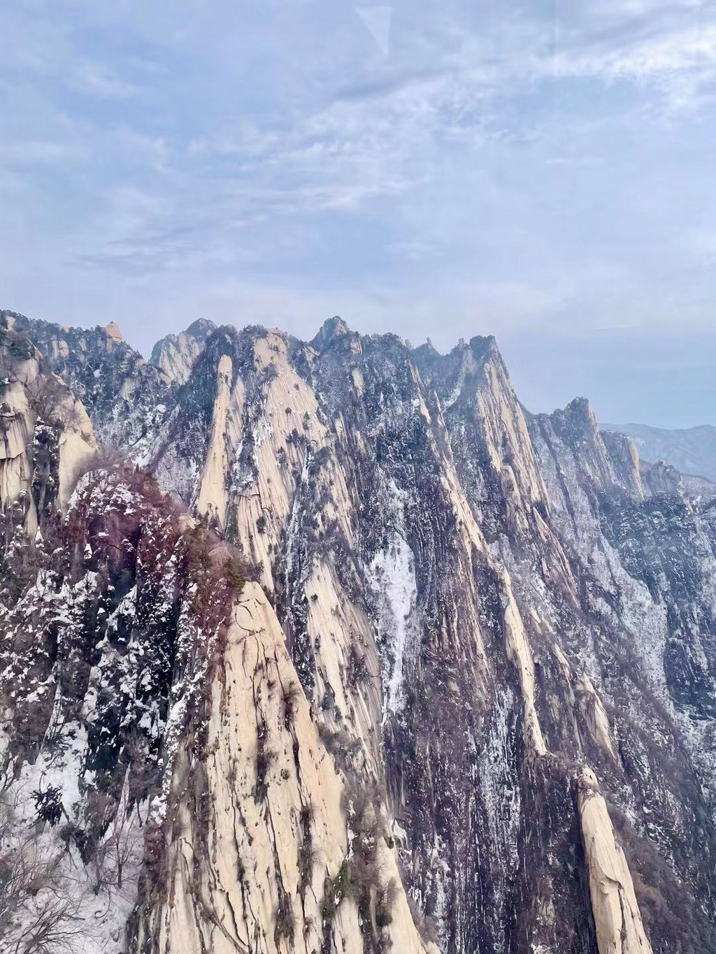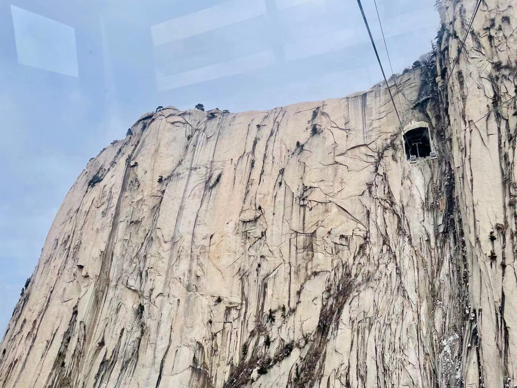 没有一点点防备,华山竟然是座雪山,这是在上山索道向外张望的景色,不信,看图。