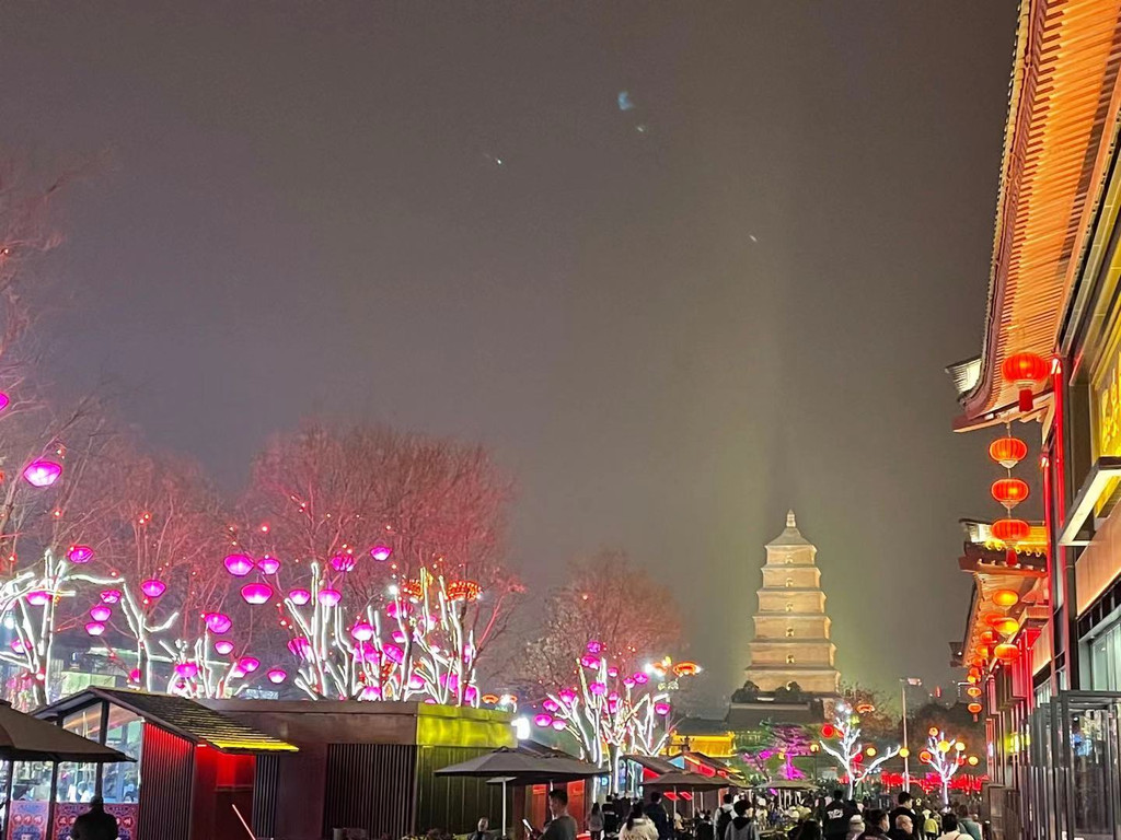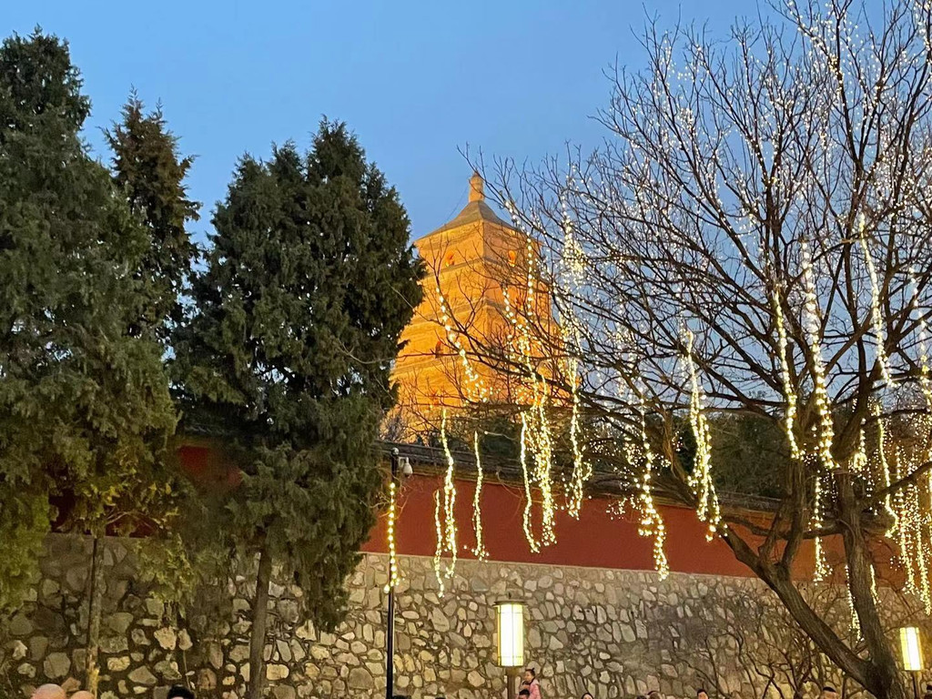 接高铁的师傅,给我的印象很深,他的车很干净,人也很热情,下车时竟然还对我说,在西安如果遇上什么事可以给他打电话,虽然是客套,但对于西安人民的第一印象就变得很好。印象更好的是,西安的马路上,我一开始有点惊讶,西安人民是眼睛都有些近视么,店招做得这么大,晚上的灯光这么亮,突然觉得自己从乡下来到了大城市,可也去过上海北京之类的,都没见过这么大这么亮的店招.......深深觉得这是西安特色了吧。之前很喜欢看的《长安十二时辰》,去年订西安这个目的地时多少是受些影响的,对这个城市的布局还算了解,规整的棋盘格,道路都宽宽大大的,一下子心情就舒畅了。