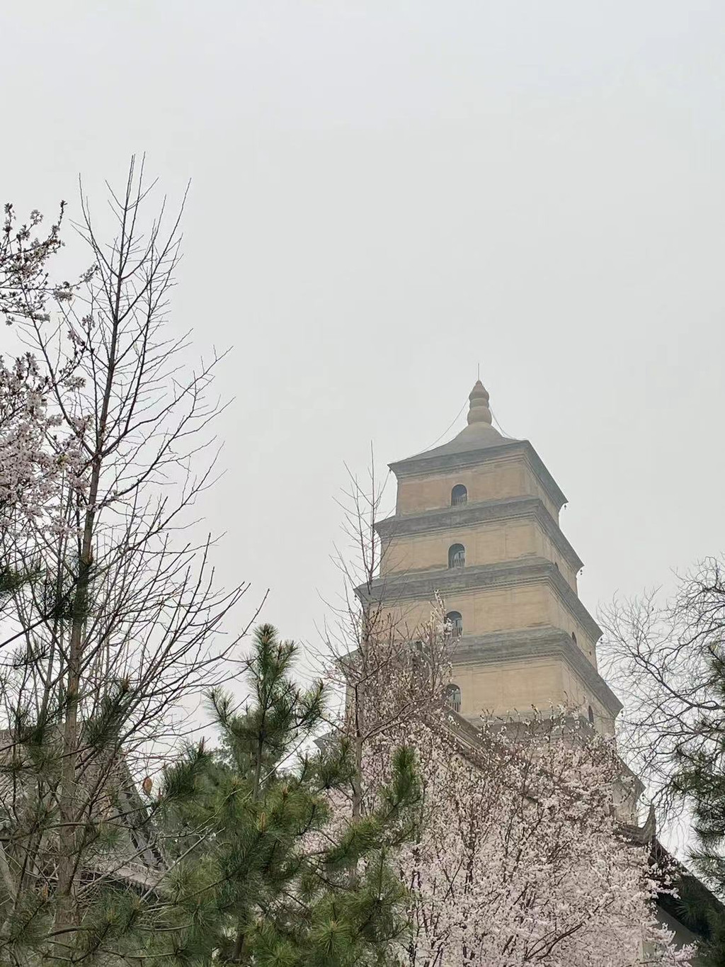 园子里的樱花开得正盛,很难想象啊,这座地处西安市中心的寺庙里,依旧住着几十位日出而‘坐’,日落而息的僧人,心灵纯净至此而不被院墙外的花花世界打扰,真令凡尘的世人羡慕。