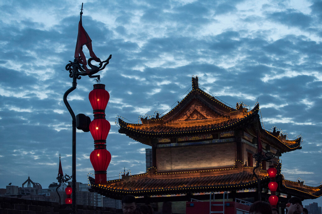 剧院出来已经是傍晚,查了一下发现古城墙有开放时间限制,好像是6点吧(记不清了QAQ),反正时间已经很紧急,公交太慢打了个车,最后还好赶上了。城墙夜景灯很漂亮,不过整体没有网上说的那么好看。尤其黑漆漆的人又多,一定要小心脚下,因为城砖不平整。
