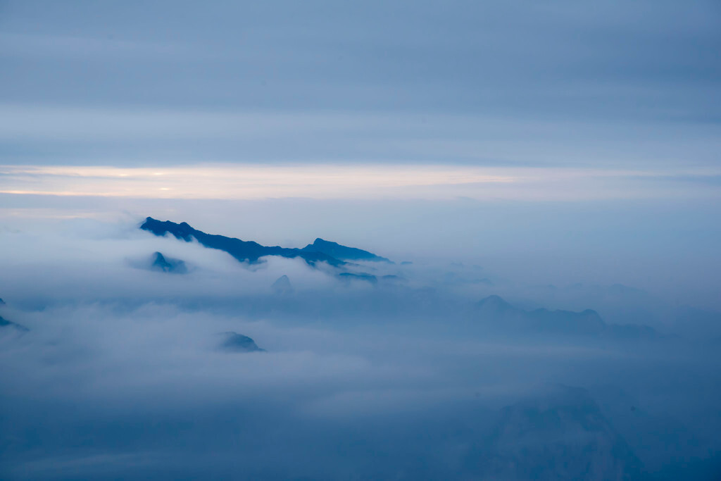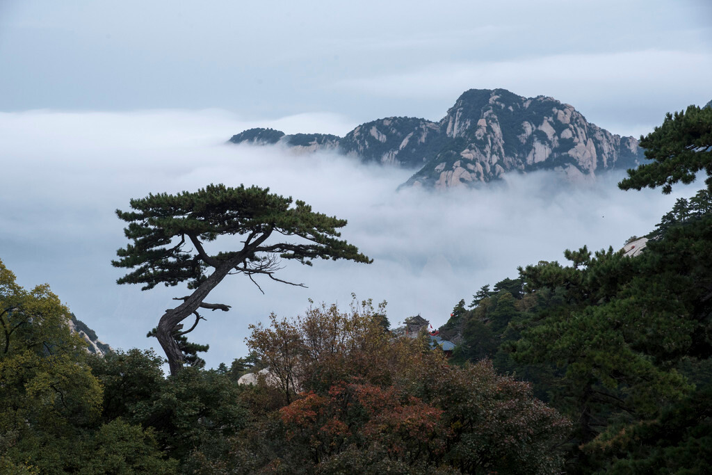 好在一路的风景激励着我们,到达西峰时天边云海美不胜收,脚下青山层林尽染。如果再晚来两周,秋景应该会更美,但至此已无憾。