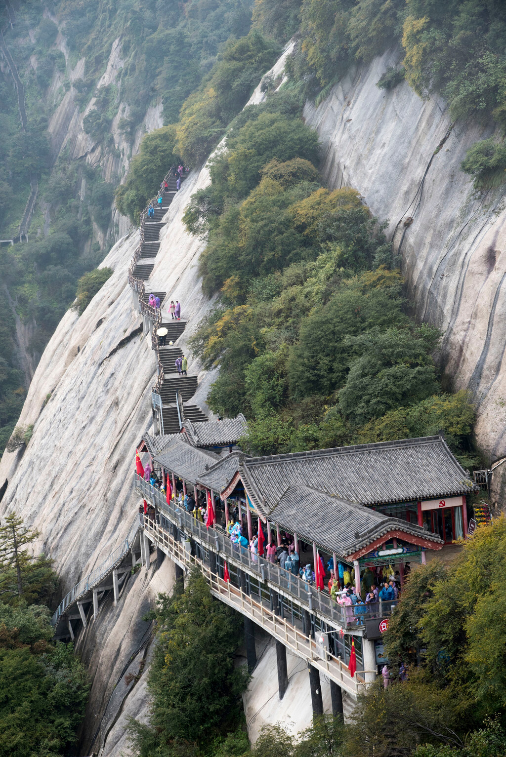 北峰上金庸先生题字的【华山论剑】处人很多,只给朋友拍了照就走了,下山我就后悔了,还是应该挤进去拍照留念的_(:з)∠)_