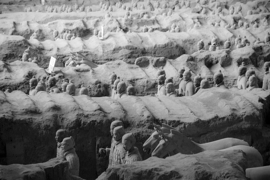 2号坑3号坑就小很多,大部分未做修复,保留了出土时的样子。以车马为主,兵士较少。