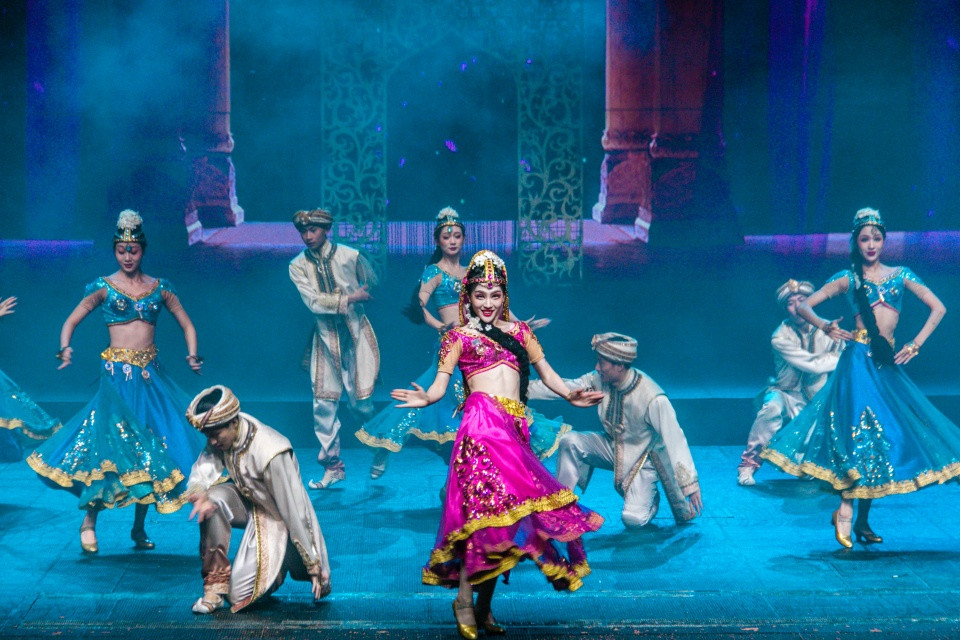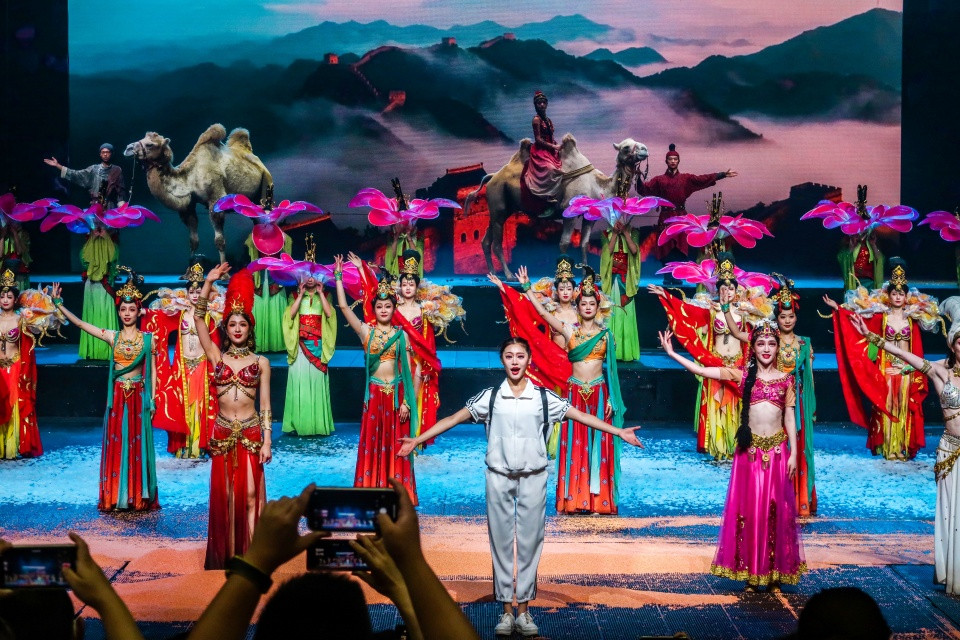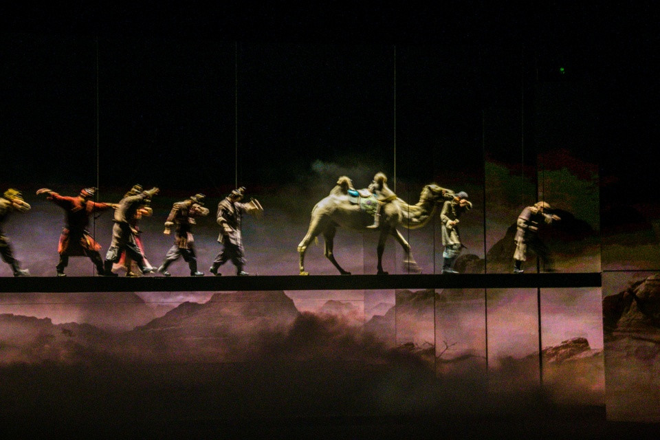 五、《丝绸之路》万里扬沙、驼铃阵阵、丝绸之路书写了一个个传奇,数百立方的黄沙倾泻而下,令人惊呼不止。