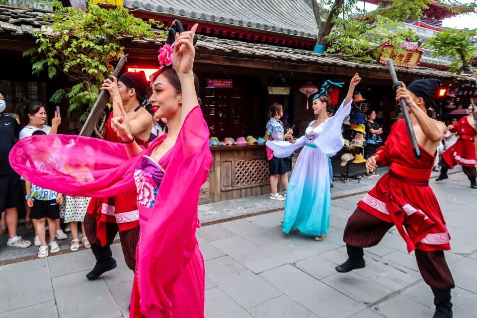 这是一个集旅游演艺、休闲、互动体验为一体的景区,穿过长安门就好似梦回大唐,行走在仿古街区中像是穿越了一番,园区随时随地都在上演着众多好看的演出,按照节目时间表才能不错每个精彩的演绎哦。