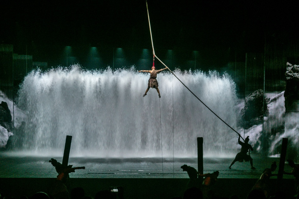 三、《大禹治水》舞台特效营造的千吨的洪水的视觉感官让人真的以为是在大江大河上,令人震撼。