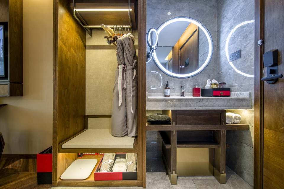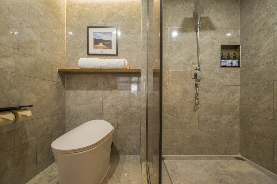 2、房间干净卫生,浴室干湿分离,浴室洗护套装都是一次性的,一客一套,有些酒店是小瓶用完他们再灌,这个是密封的