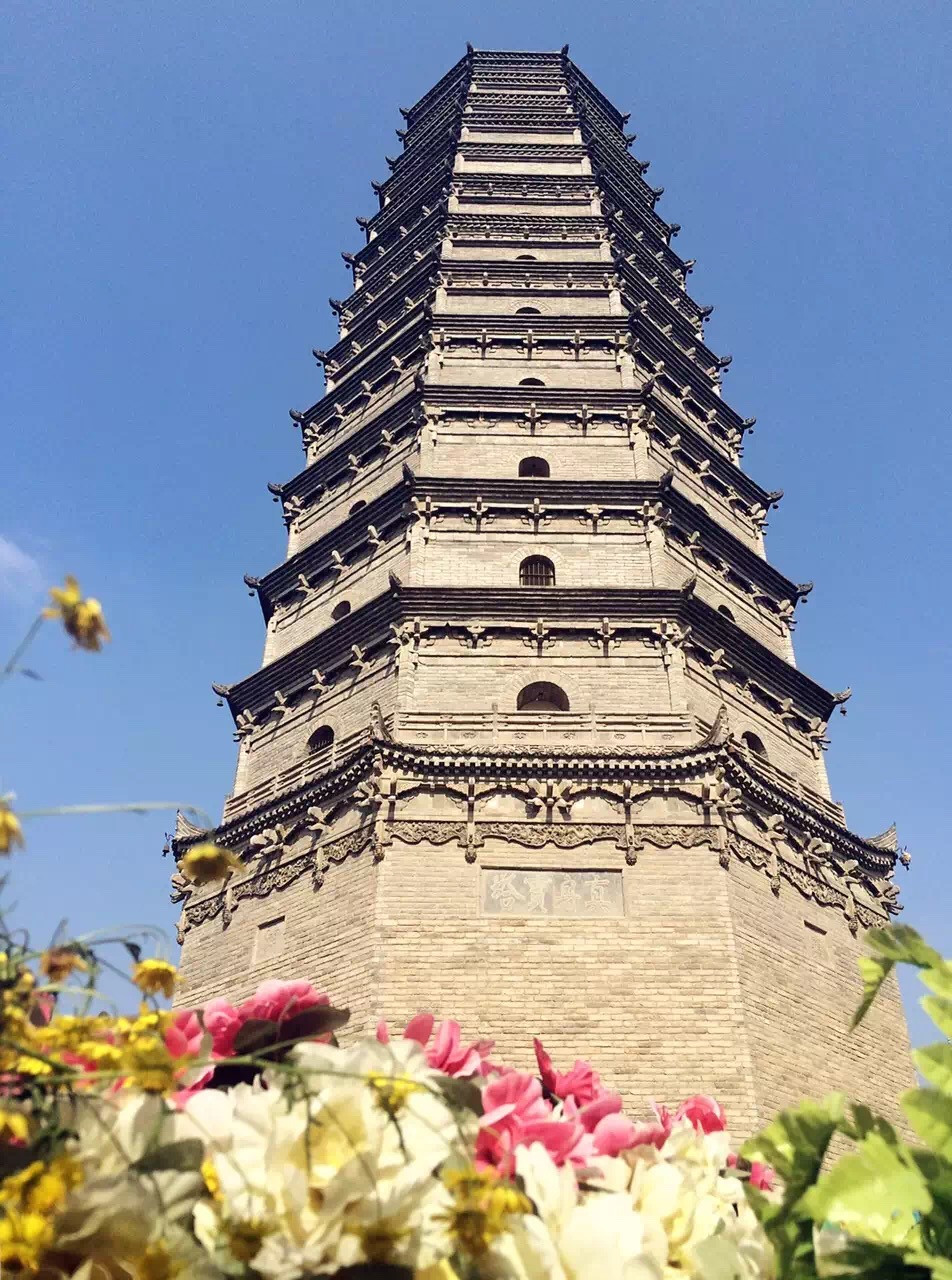 真身宝塔因塔下藏有佛祖真身舍利而得名,初为“圣冢”,唐代建四级木塔,明代改建砖塔。此塔见于典籍记载,均称其为“古塔四层”、“木塔四层”,金人称其“三级风檐压鲁地,九盘轮相壮秦川”。