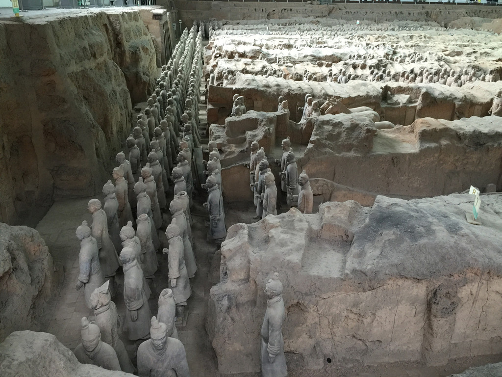 秦始皇从13岁即位时就开始营建陵园,前后将近使用了72万人力,修筑时间长达38年,工程浩大。直至秦始皇去世陵园都未修建完成,由秦二世胡亥继续修建1年多才完成。 传闻中,秦始皇耗费无数人力物力财力,为自己建造了一个地宫,而兵马俑就是地宫的守卫者。