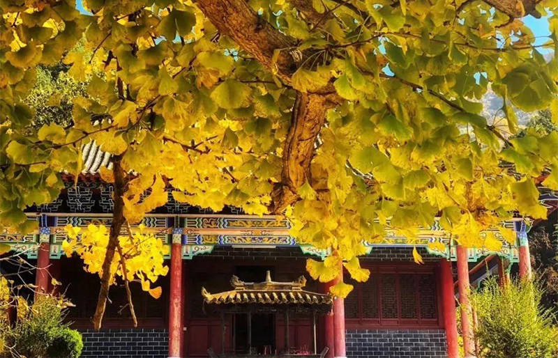 深秋时节,和煦的阳光照耀在树叶上,将金黄的叶子点亮的无比炫丽,一片片耀眼亮丽的金黄,迷醉了整个秋天。随着微风轻轻起舞的片片金黄,在古观音禅寺里,诉说着千年的故事。