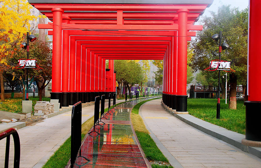 位于半坡地铁站口的机车公园,以机车文化为主题,机械与科技感十足,是摩旅爱好者的聚集地,也是秋天休闲游览的好去处。当散落的秋叶被行驶过的摩托卷起,机车与秋景在“动”、“静”之间擦出别样的花火。