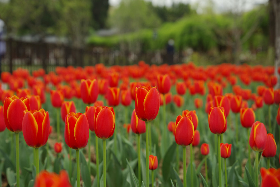 郁金香盛开深受广大市民游客的喜爱,它那高贵的姿态,姹紫嫣红的色彩,非常的迷人,给前来踏青赏花的游客献上一场愉快的春日盛宴。