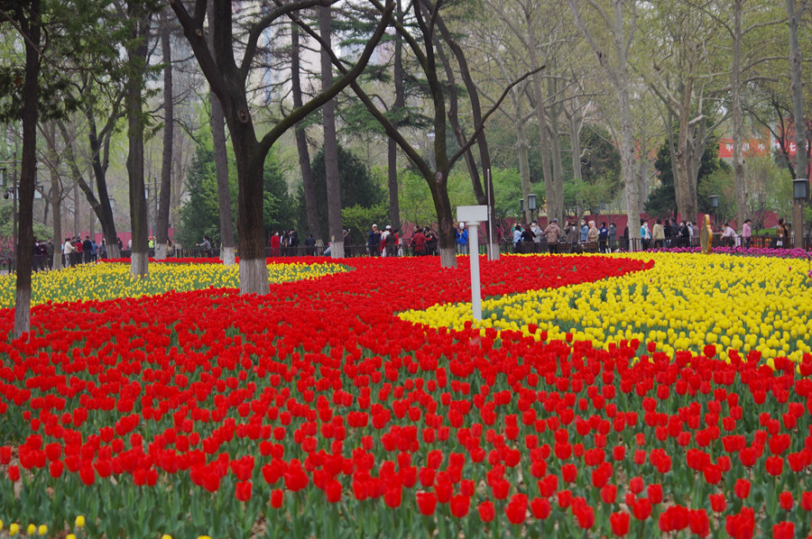 兴庆公园的郁金香,让西安的春天像花一般美丽。今天下午溜腿散步来到兴庆公园,旖旎的风光惹人醉。公园人不算多,到处开放着各种鲜花,空气中飘着甜蜜的香气。大片大片的郁金香花把兴庆公园妆点得五彩缤纷,绚烂多姿,一派生机盎然的景象美极了,拿起相机将花儿的美丽留在照片里。