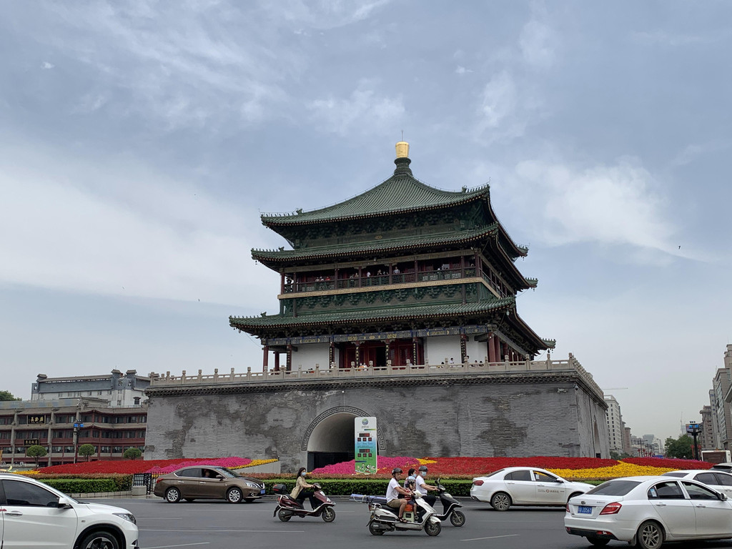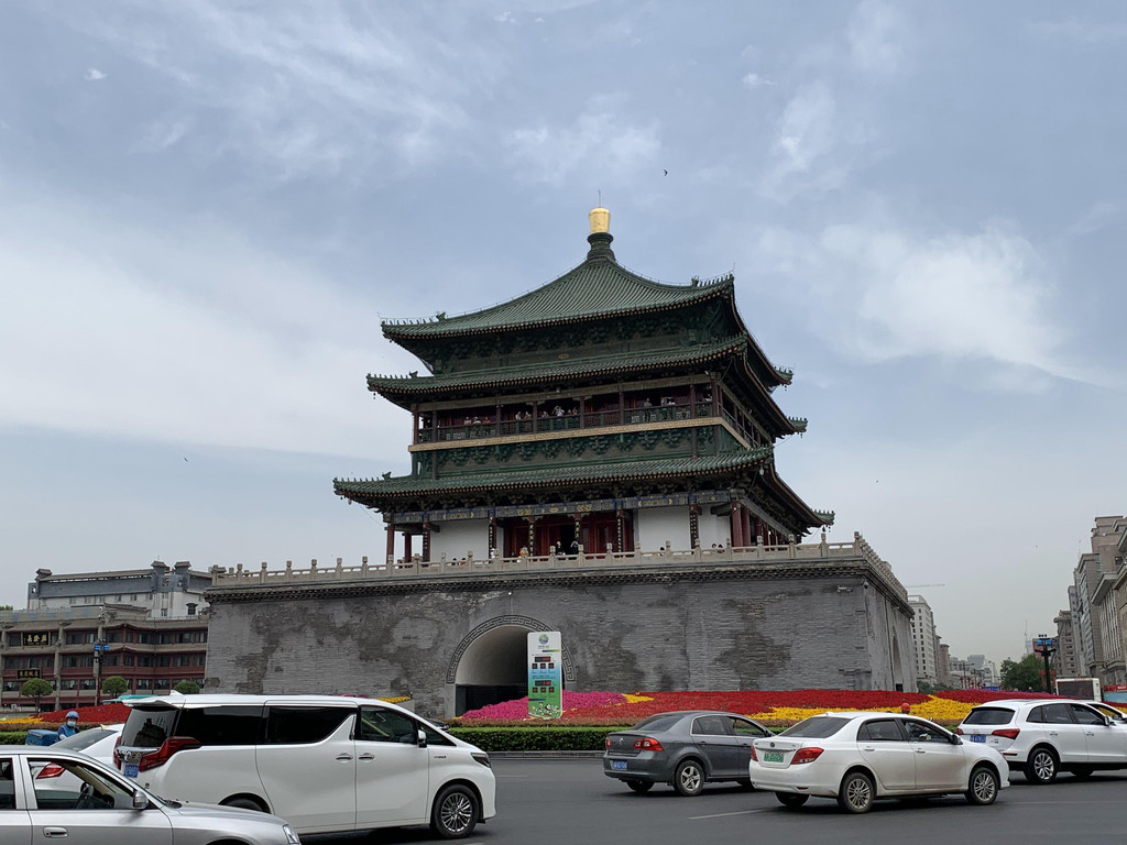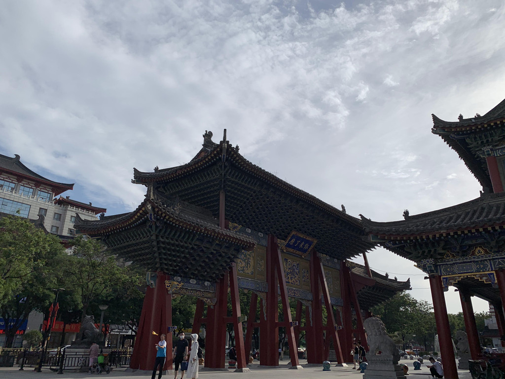 太阳太毒烈太热了,从城墙下来,经过古城区中心著名的钟鼓楼,去回民街溜达了一圈。