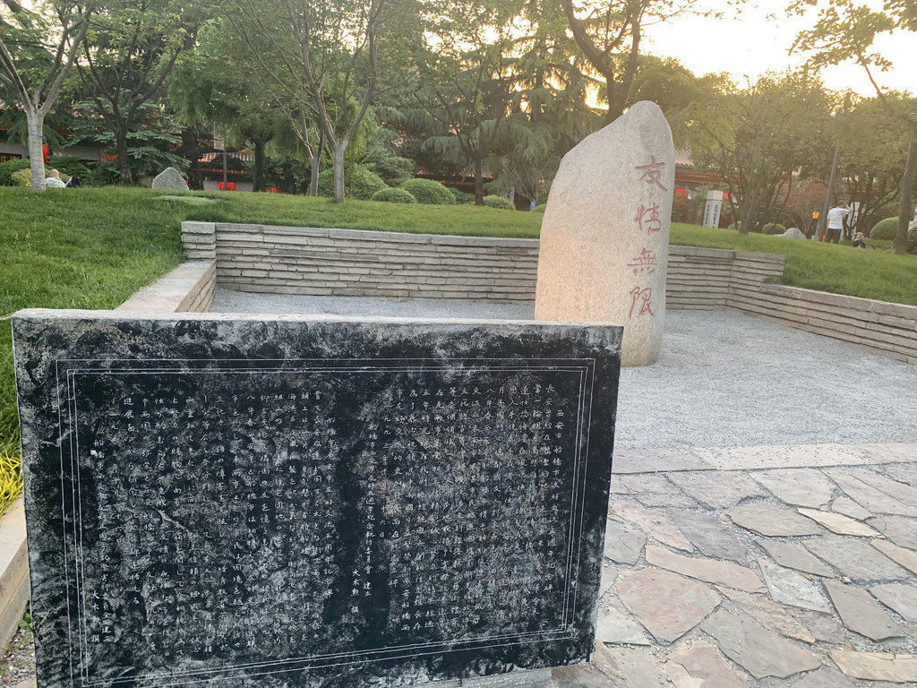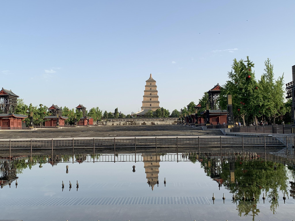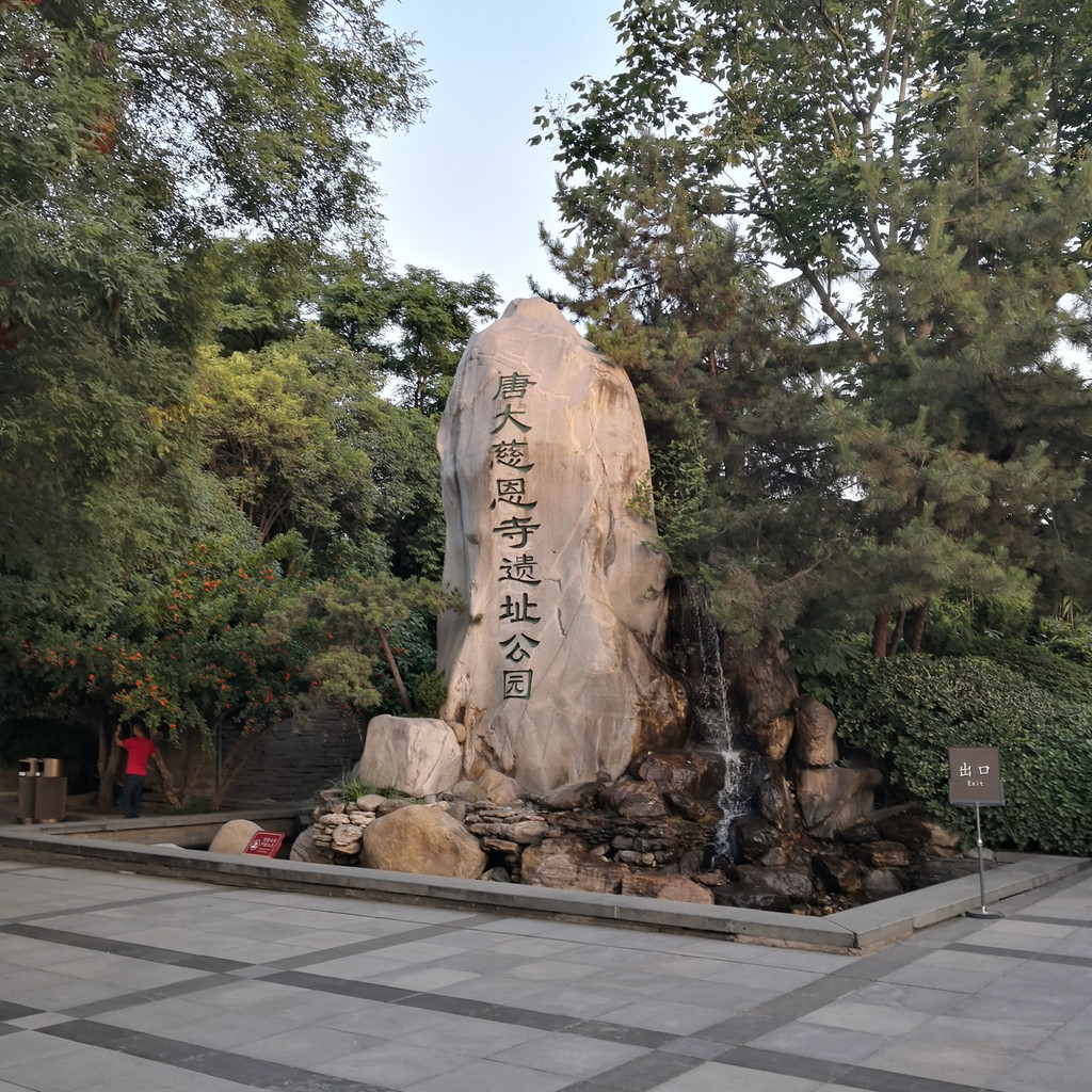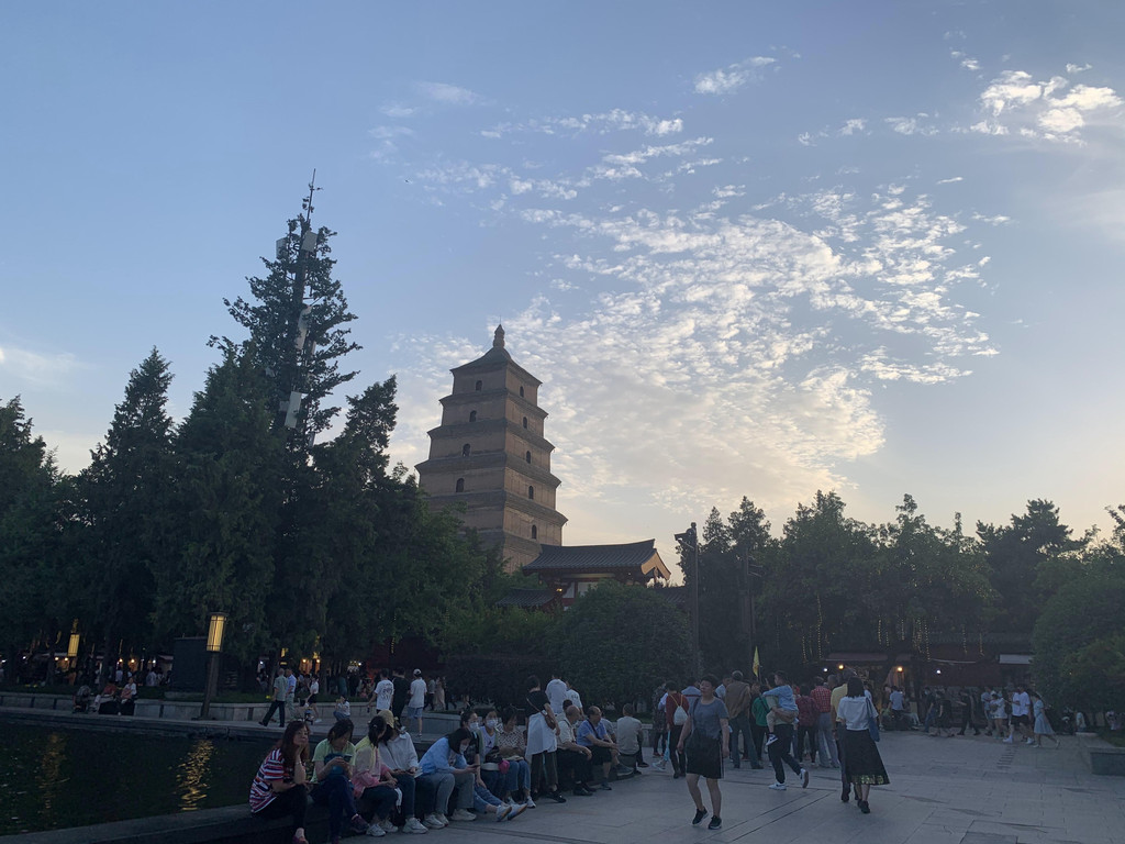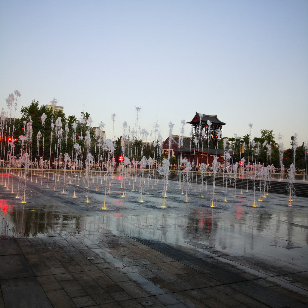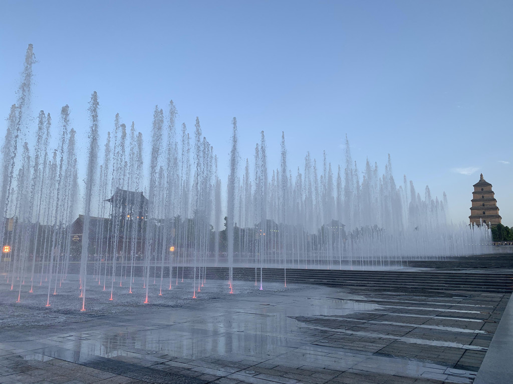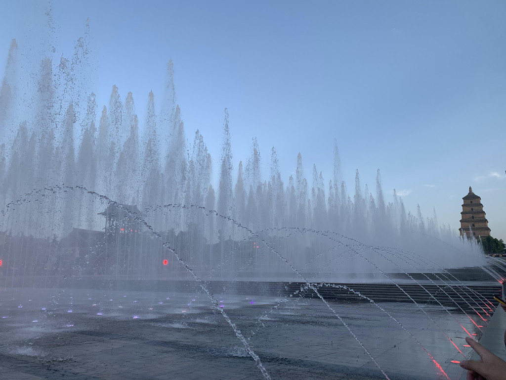 返回大雁塔等待音乐喷泉的开始,其实没打算看喷泉,觉得各地都有喷泉,而且都说自己是世界最大的喷泉,但是太热了,不想跑来跑去,就坐在树下吃雪糕等待吧。西安景点卖雪糕很独特,很多人背着书包在人群中穿梭低声叫卖,如果你想买,刷码付款后立即从包里拿出来给你,一直疑惑这么热的天气雪糕不会化掉吗?事实就是这样,我们买了两个,其中一个吃一半就掉在了地上。