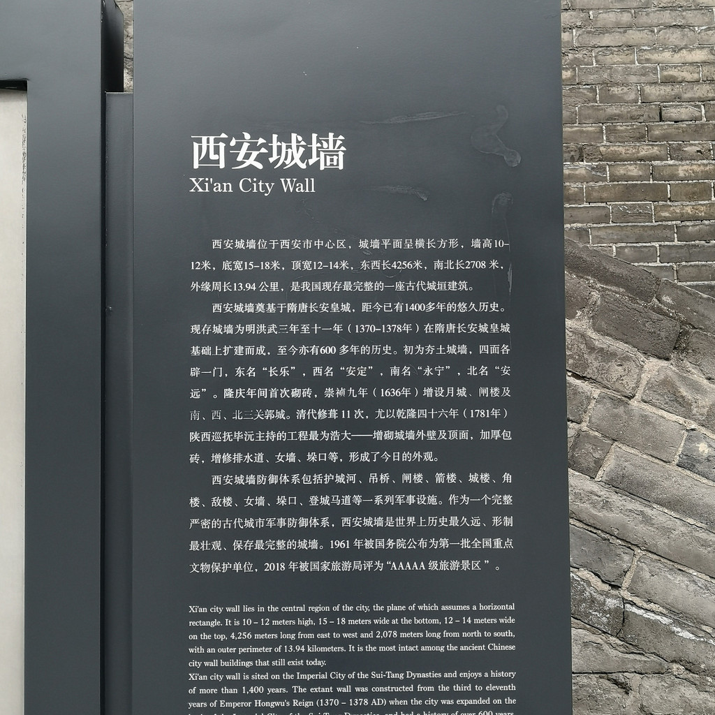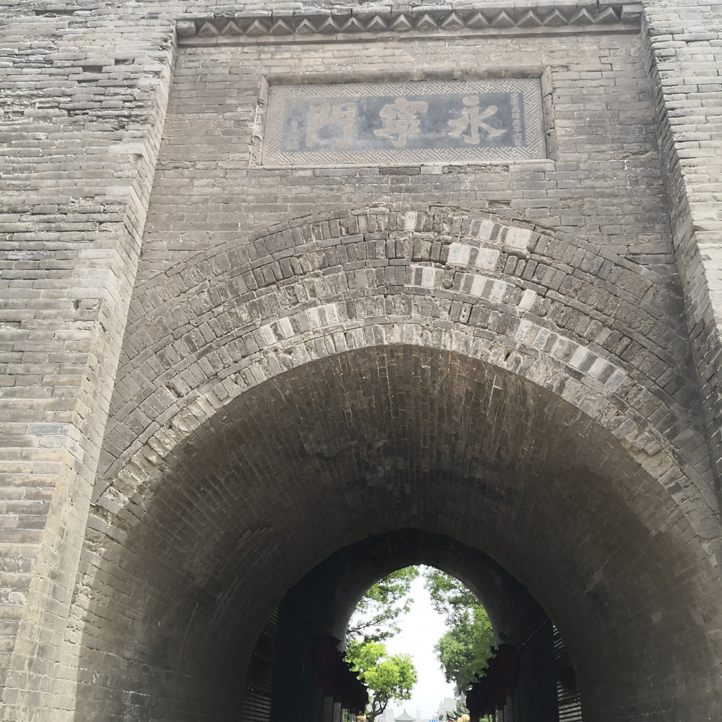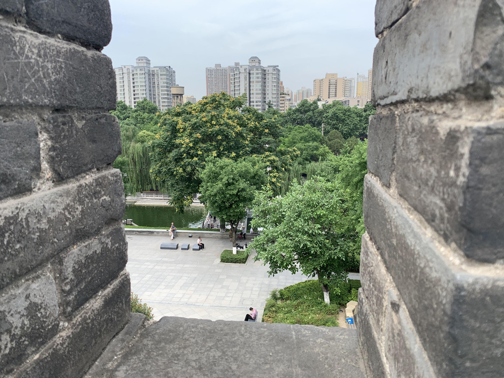 漫步城墙,脚下厚重的城砖有些刻有文字,应该是修葺的时候烧制城砖的人自己刻上去的吧,俯瞰古城内外风光,城墙下面树木郁郁葱葱,河中偶有轻舟飘过,隐隐仿佛传来铿锵激昂的秦腔,世世代代居住在这里的人们安居乐业,帝国的坚韧睿智、成熟内敛、豪放大气早已植入他们的骨髓、血液。
