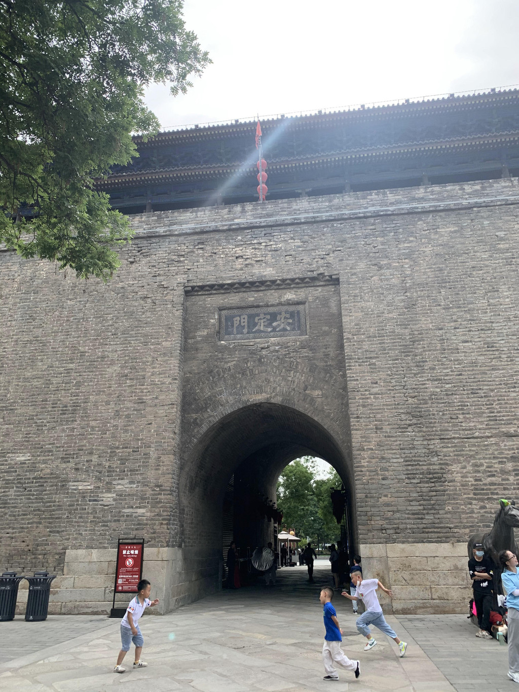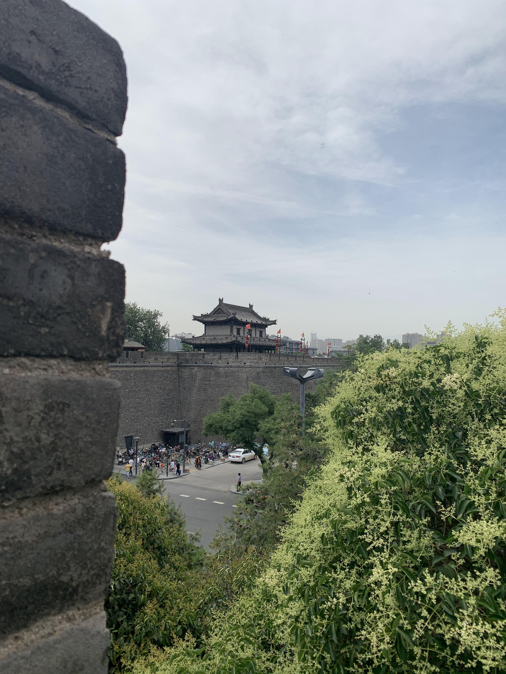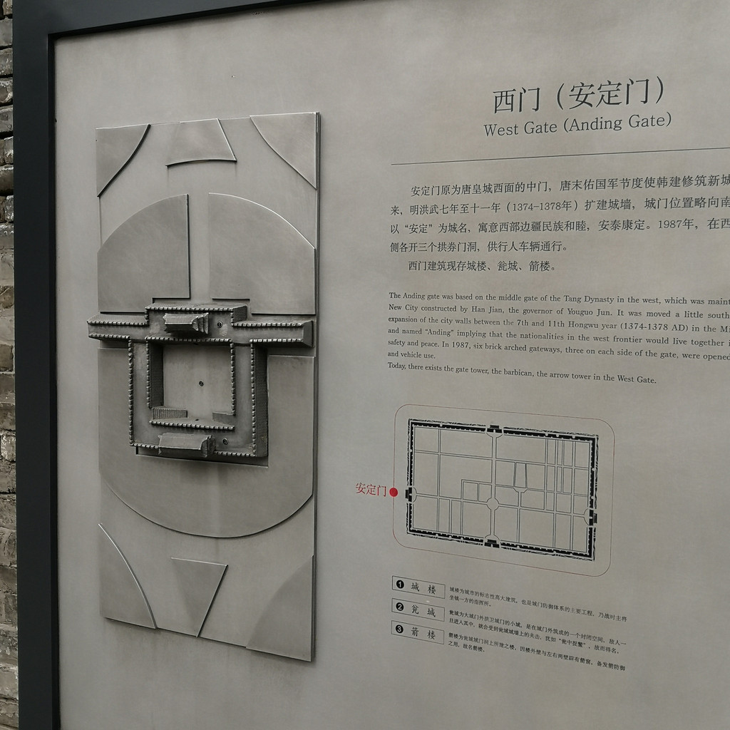 漫步城墙,脚下厚重的城砖有些刻有文字,应该是修葺的时候烧制城砖的人自己刻上去的吧,俯瞰古城内外风光,城墙下面树木郁郁葱葱,河中偶有轻舟飘过,隐隐仿佛传来铿锵激昂的秦腔,世世代代居住在这里的人们安居乐业,帝国的坚韧睿智、成熟内敛、豪放大气早已植入他们的骨髓、血液。