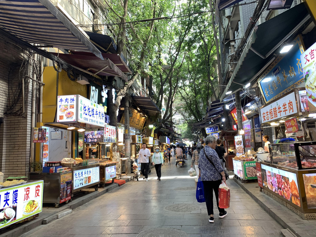 从兵马俑博物馆回来,提前预约好住在洒金桥附近的庙后街,这里是各种小吃、特产集中的街区,相对网红的回民街,洒金桥这边原居民较多,尽管现在游客也逐渐多了起来,但是遗留的老街、老屋、老店还在,过去的生活环境还在,更能体验当地人的生活。